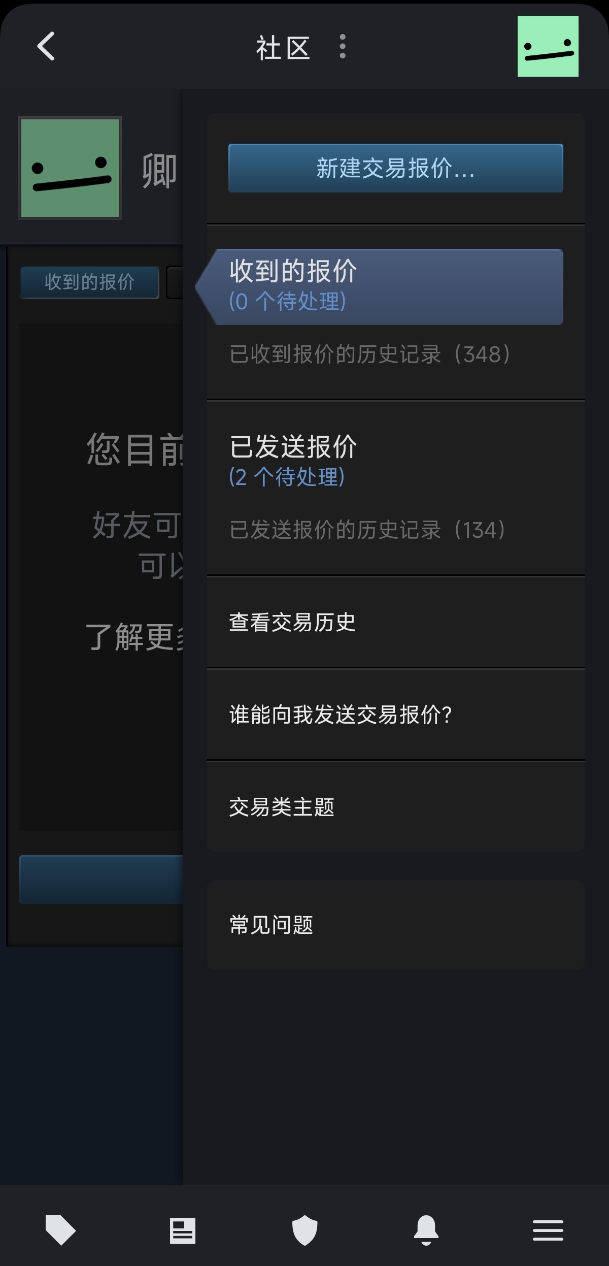 6、进入后点击右下角的“谁能向我发送交易报价?”。