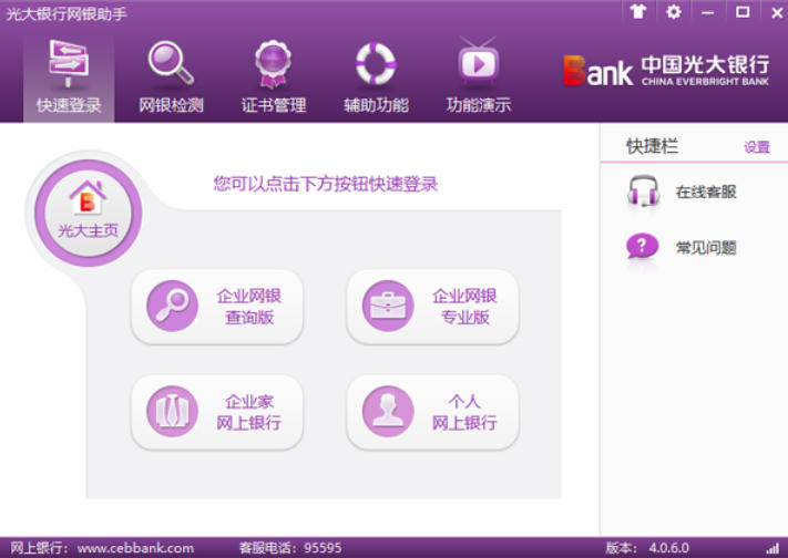 光大银行网银助手是光大银行官方推出的一款网银安全辅助工具,旨在为用户提供安全、便捷的网上银行使用环境。