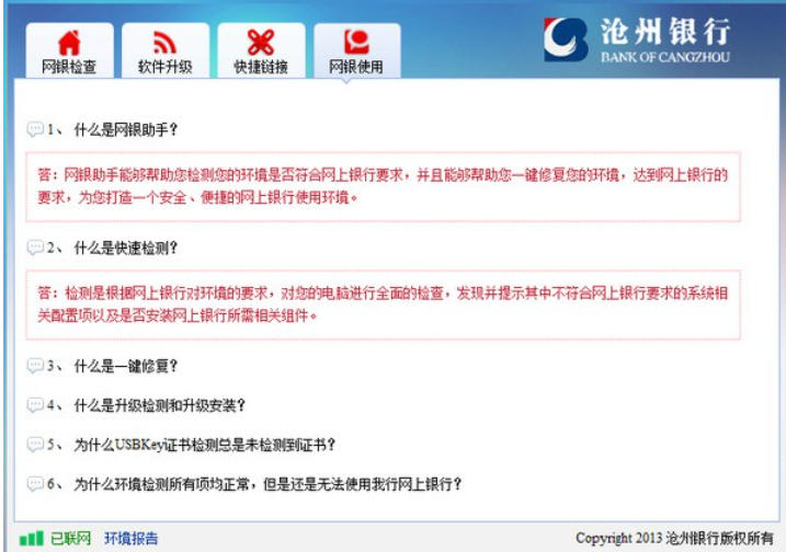 全面检测:能够对网银环境设置、系统环境、浏览器设置等进行全面检测,精准找出存在的问题。