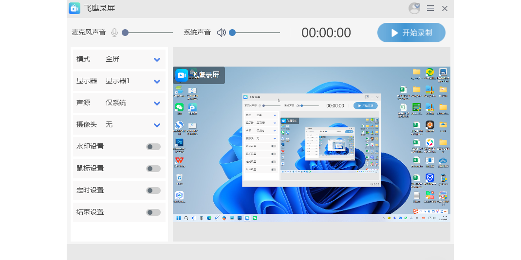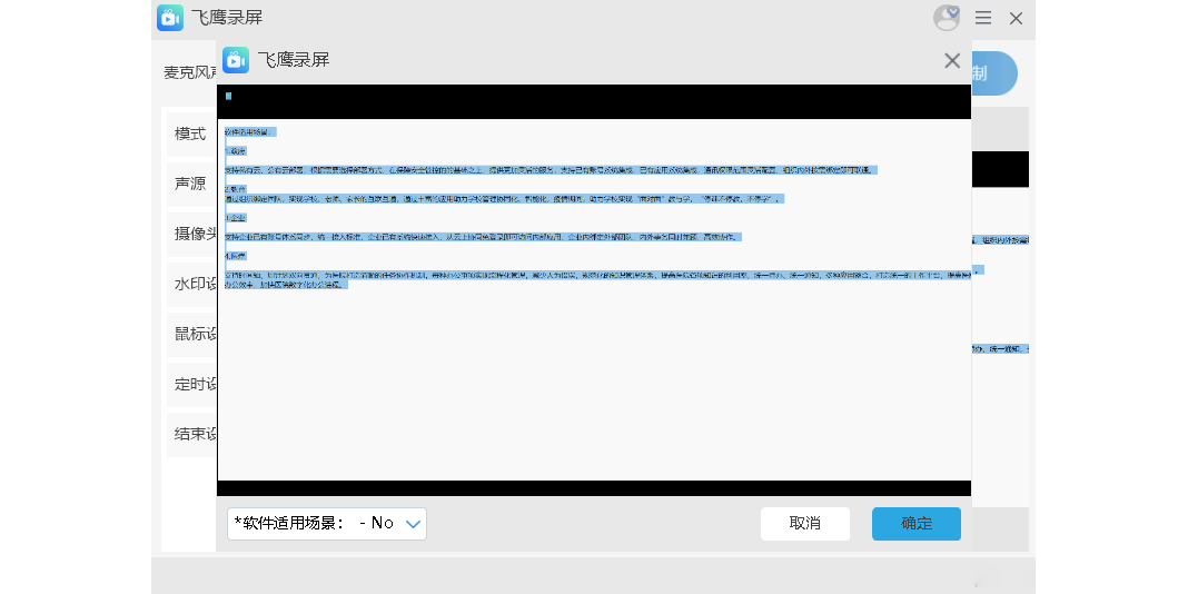 飞鹰录屏是一款简单易用的屏幕录制软件,是多模式、多格式、多音源、多种画质可选的屏幕录制工具,适合游戏录制,课程录制,会议录制,直播录制。