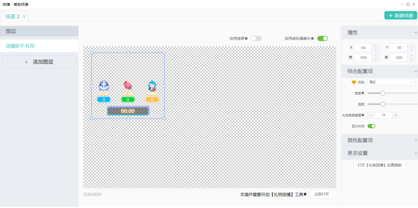 心愿、任务单、礼物记录、弹幕美化等。使用虚拟摄像头,兼容市面大部分直播软件。