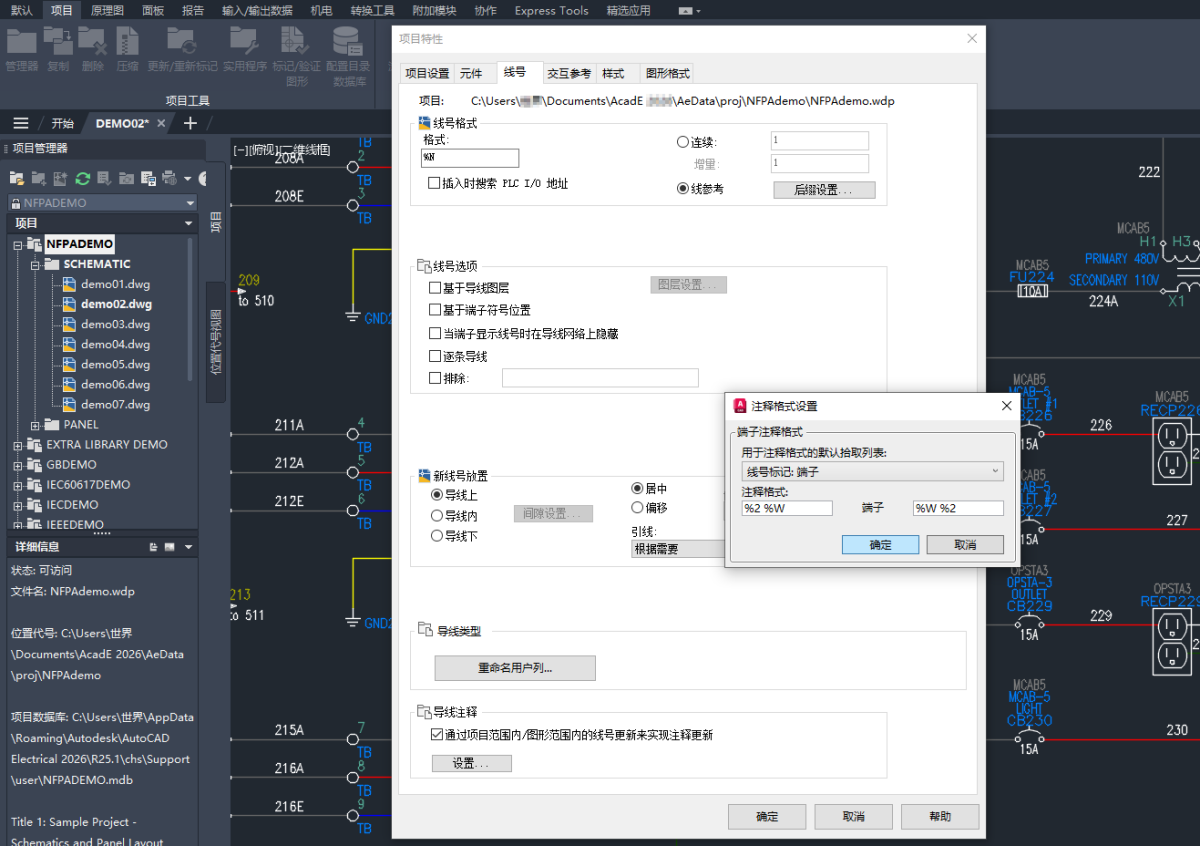 更新面板示意图中的线号注释(包括端子),同时更新项目范围或图形范围内的线号。