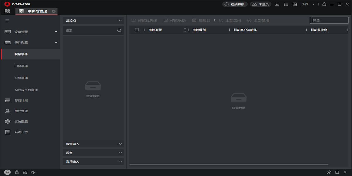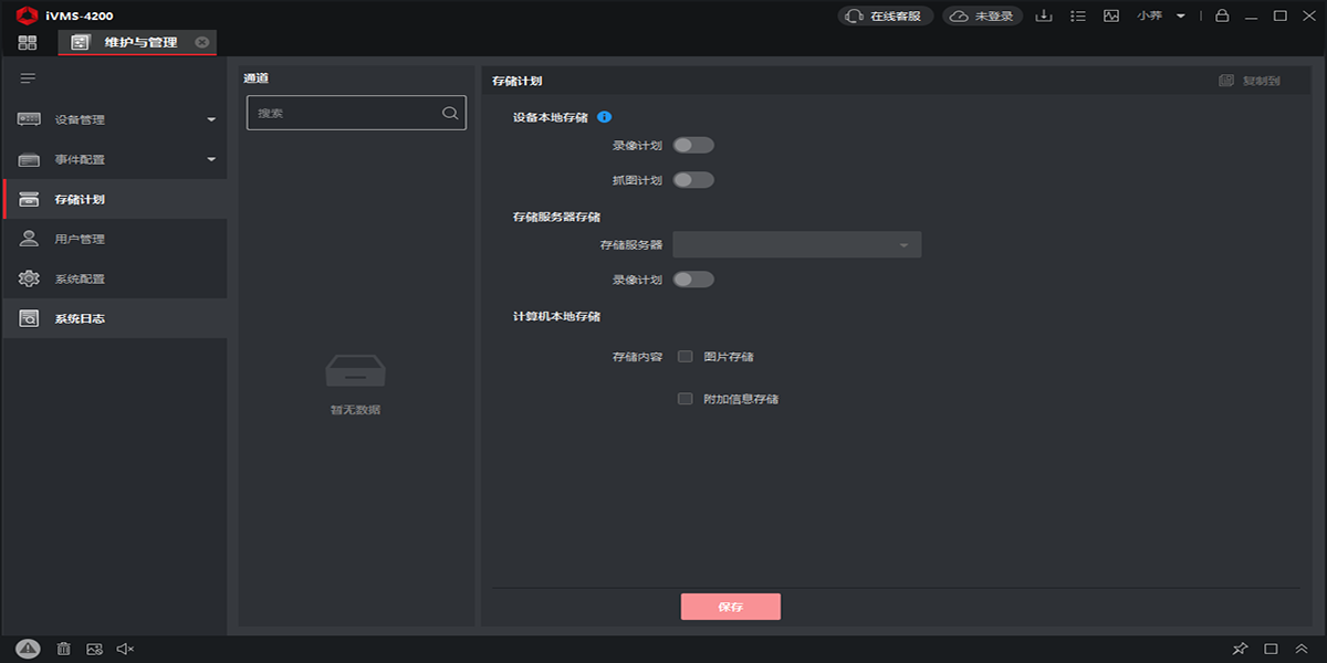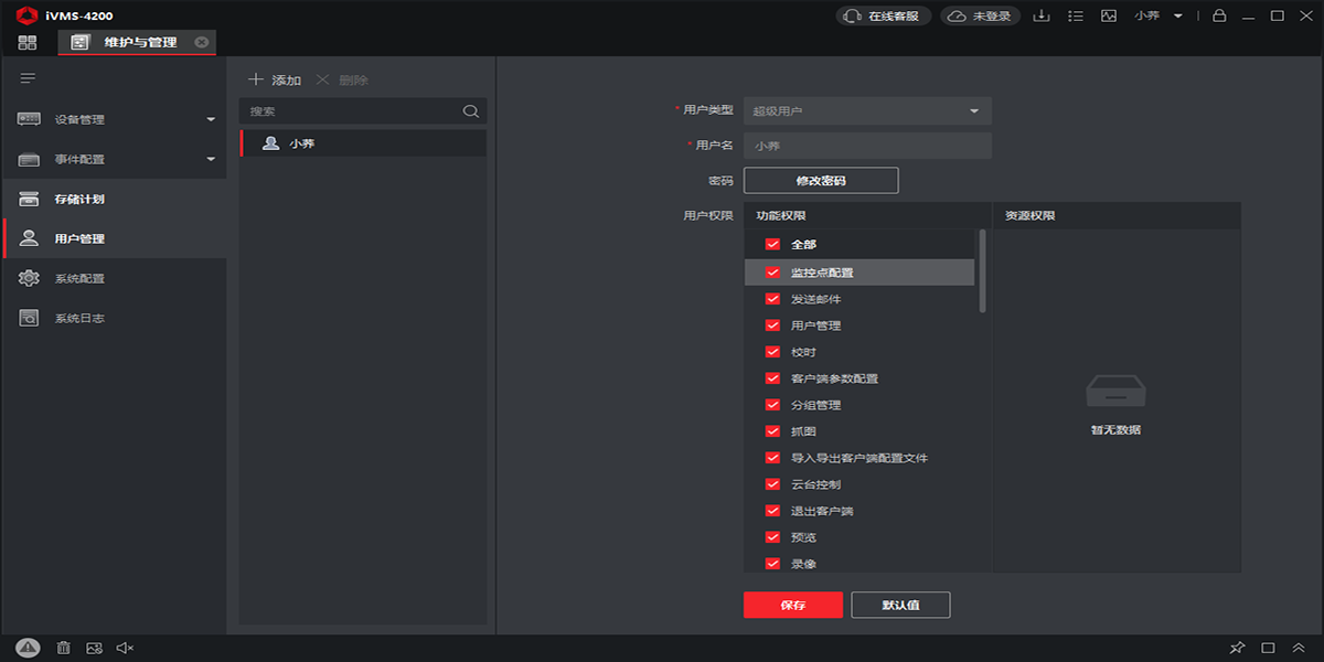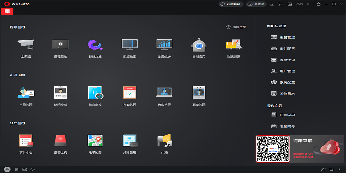 ivms-4200客户端是一款与网络监控设备配套使用的综合应用软件,可满足用户多方面需求,如设备管理、人员管理、考勤、可视对讲、数据分析、远程设备配置等。客户端可与dvr、nvr、ipc、ipd、dvs、网络存储设备、报警设备、门禁设备、可视对讲设备等配套使用,提供网络服务(预览、回放、云台等操作),提供灵活、多样的部署方案。