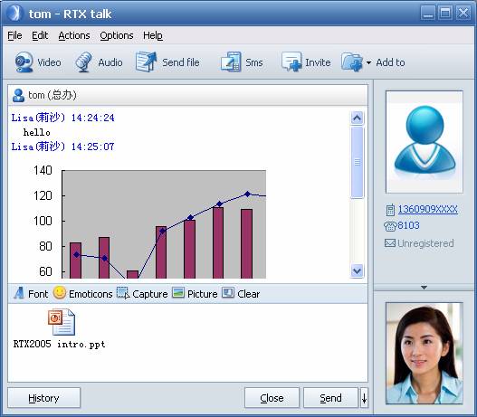 腾讯通rtx(real time exchange)是腾讯公司推出的企业级即时通信平台,致力于帮助企业提高运作效率、降低沟通成本、拓展商业机会,是一个高度可管理、低成本、易部署的it平台。腾讯通rtx集成了丰富的沟通方式,包括文本会话、语音/视频交流、手机短信、文件传输、ip电话、网络会议、以及应用程序共享、电子白板等远程协作方式。