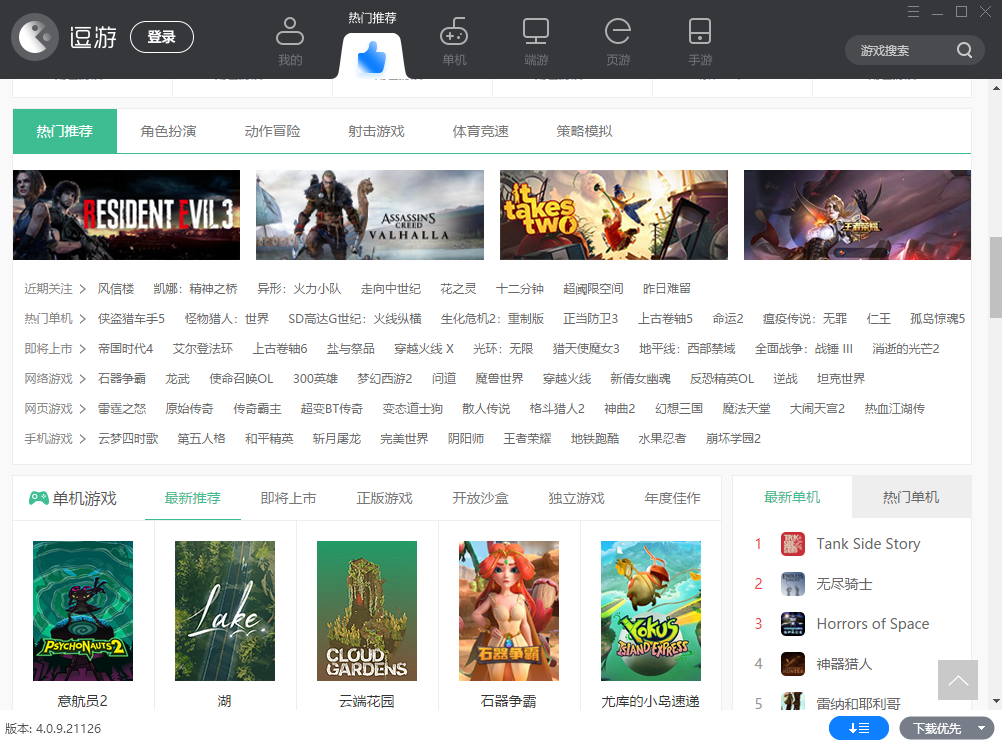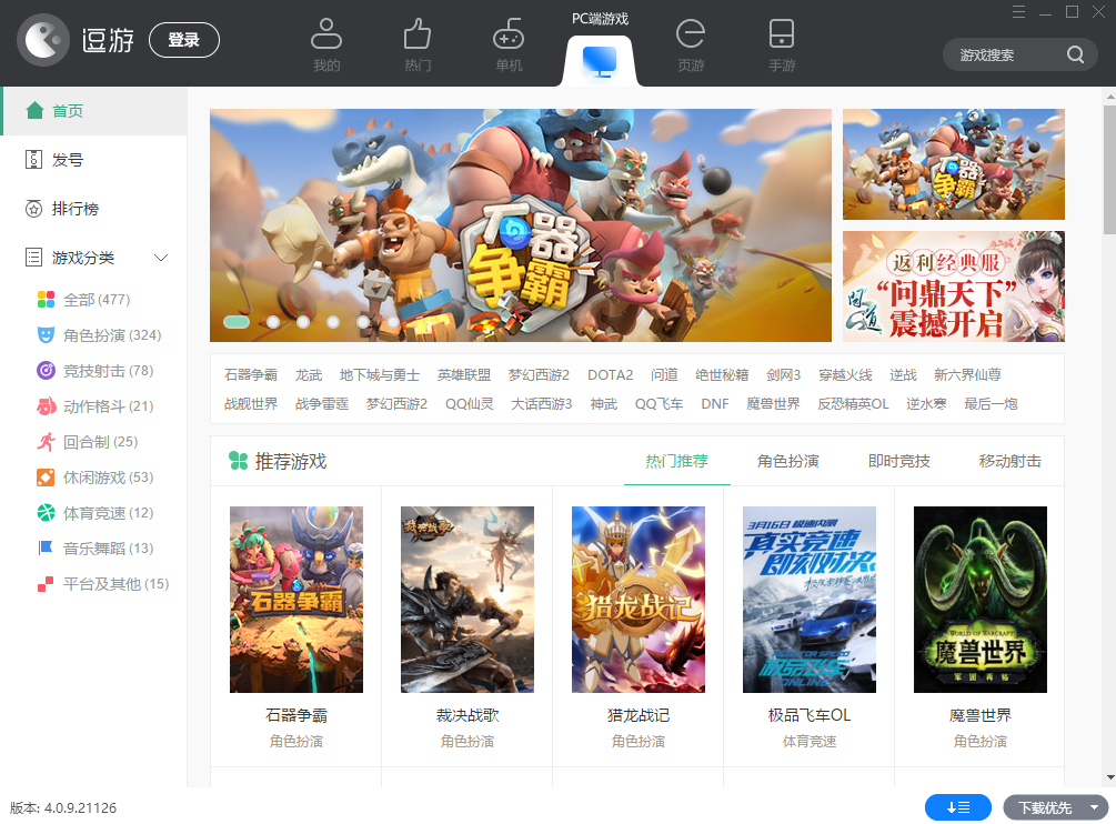 逗游游戏宝库(逗游游戏盒)官方版是一款超级强大的游戏合集软件,专为玩家提供各类游戏软件的下载服务。逗游游戏宝库官方版拥有海量的游戏资源,但是体积却十分轻巧,安装便捷,绿色安全,在逗游游戏宝库,你可以轻松获得超过100000款游戏。