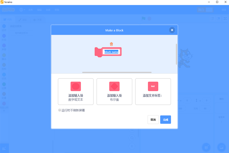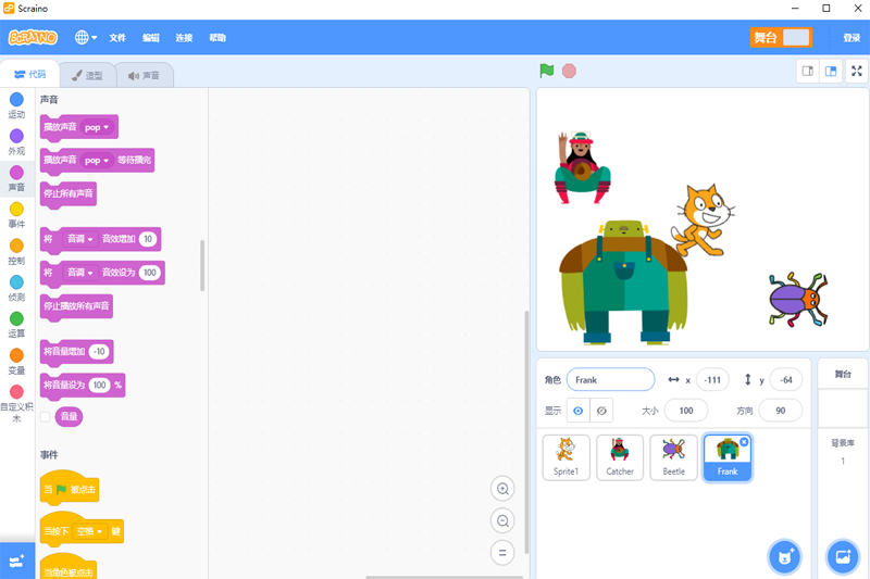 将舞台区移到右边,编程序放在中间,更加方便编程者编程程序;积木区不再严格分区,可以通过滑动鼠标来选择区块,减少点击率,增加了用户的体验度。
