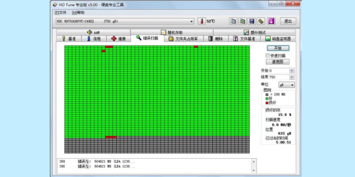 4、该程序可更新硬盘驱动器的状态,以便检测即将发生的设备故障或意外的数据丢失。您可以使用程序定期扫描损坏的块和扇区。高亮显示所有的错误,以防止硬盘驱动器可能出现的问题。