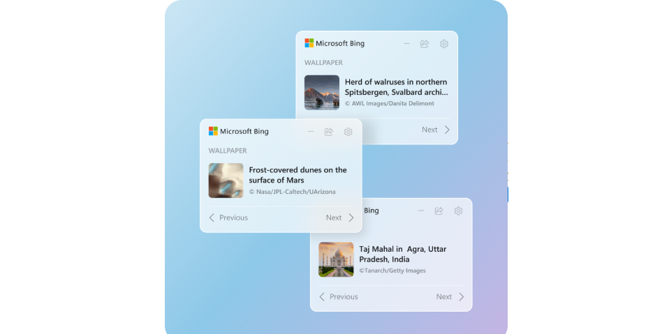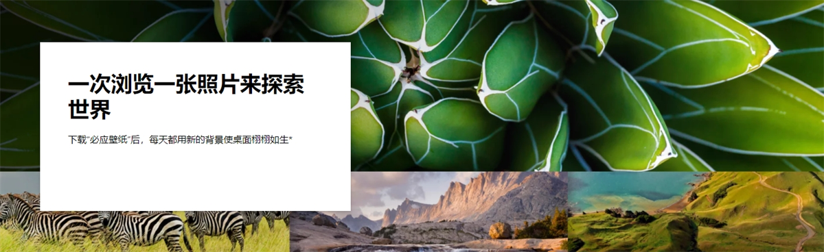 “必应壁纸”包含必应主页上特别推荐的一批来自世界各地的精美图片。您不仅每天都会在桌面上看到一个新图像,而且还可以浏览图像并了解其来源。