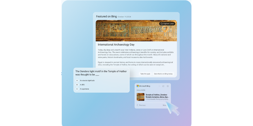找到将创意变为现实所需的东西。在必应上搜索时,深入了解热门新闻和智能答案。另外,如果在您所在的市场中可用,请注册 microsoft rewards 以赚取积分(仅用于搜索),然后将其兑换为礼品卡、抽奖活动奖品、非营利性捐赠等。