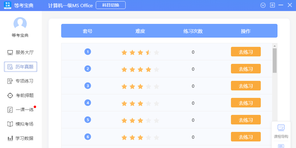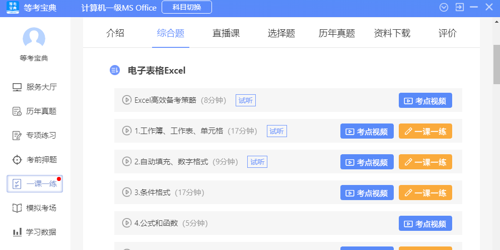 等考宝典计算机考试,拥有全国计算机等级考试全真题库和视频解析:历年真题、知识点专项练习、模拟考试、绝密押题、全真考试软件,免费直播公开课、题库解析视频、选择题考点视频、综合题考点视频,等考宝典试题讲解结合场景,界面操作简便,助力高效备考计算机考试,轻松提升技能!