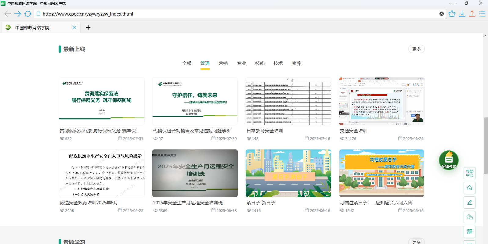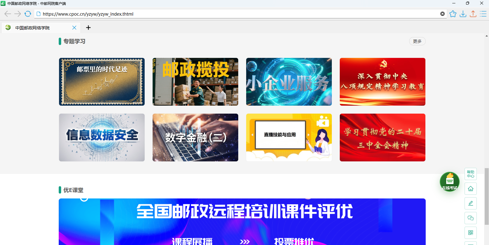 中邮网院学习客户端是中国邮政网络培训学院在线学习平台,内容最新的时事新闻,邮政党校、邮政业务、速递物流、技能鉴定、技能训练、学员中心、资源中心等等,在学习资源建设方面,中邮网院按照“整体规划、规范建设、分类推送、分级实施”的原则,统一编制全网资源建设规划,引入大量外部资源。这不仅丰富了课程形式,也将内容拓展到科技、文化、历史等多个领域。