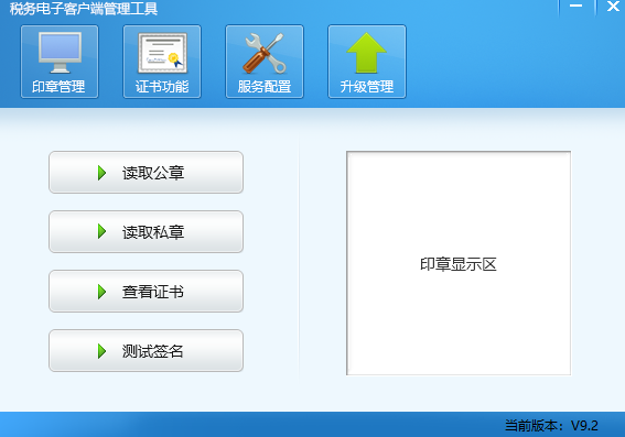 电子签章客户端是中税云服务推出的电子签章软件,又名税务电子客户端管理工具,印章管理包括读取公章、读取私章、查看证书、测试签名,其他还有服务配置、证书功能等!