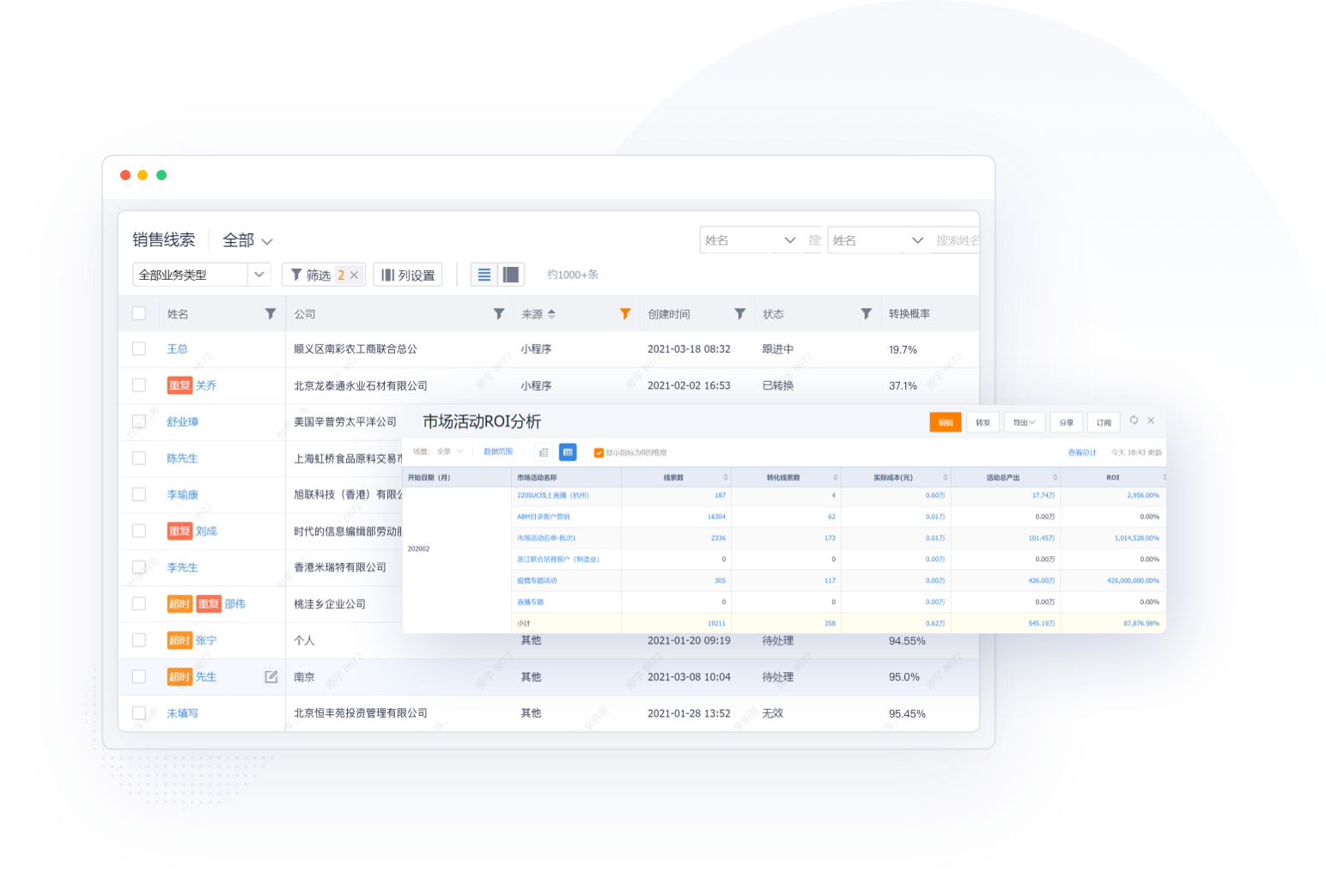 实时掌握企业营销动态变化,销售简报、数据看板、定制化报表等可视化图表一目了然,为企业进行360度全息数据分析。