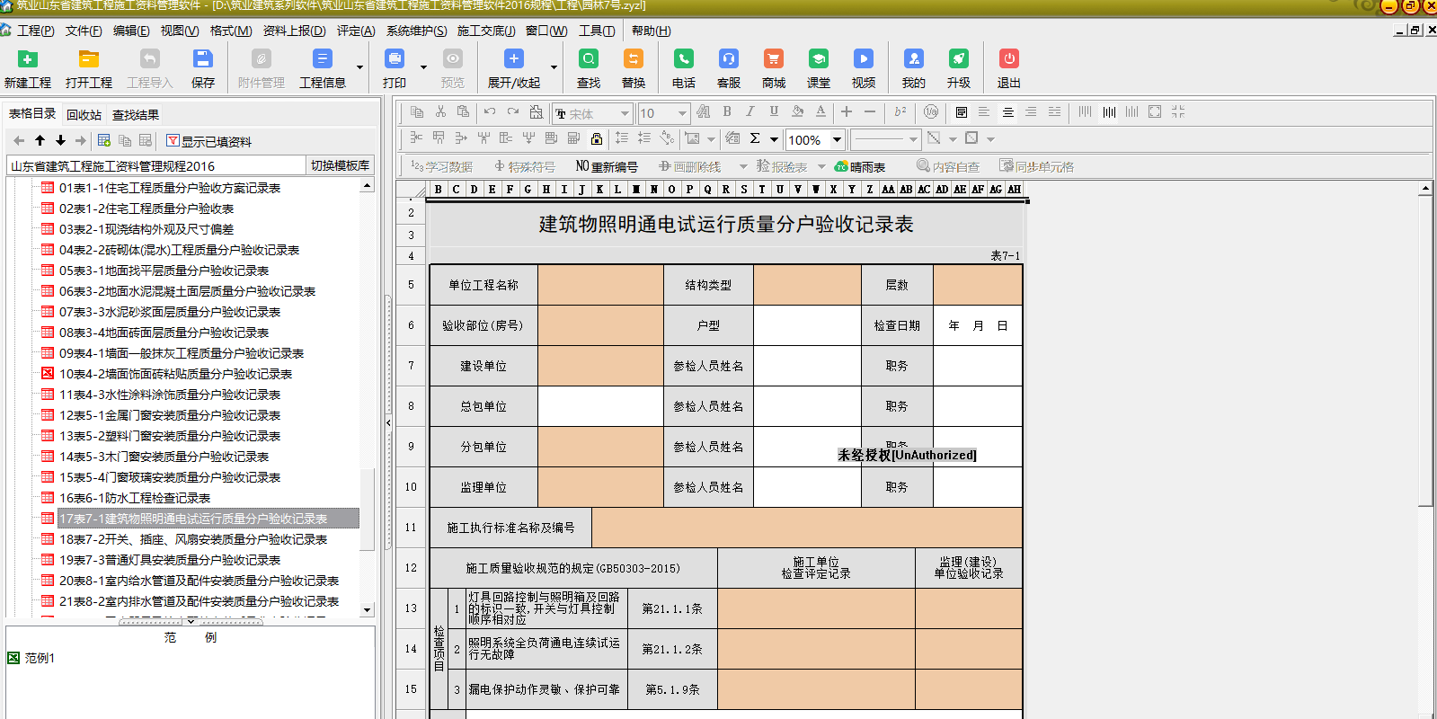 15.软件可以跨专业跨规范表格借用,一个工程中可以有多个规范的表格。