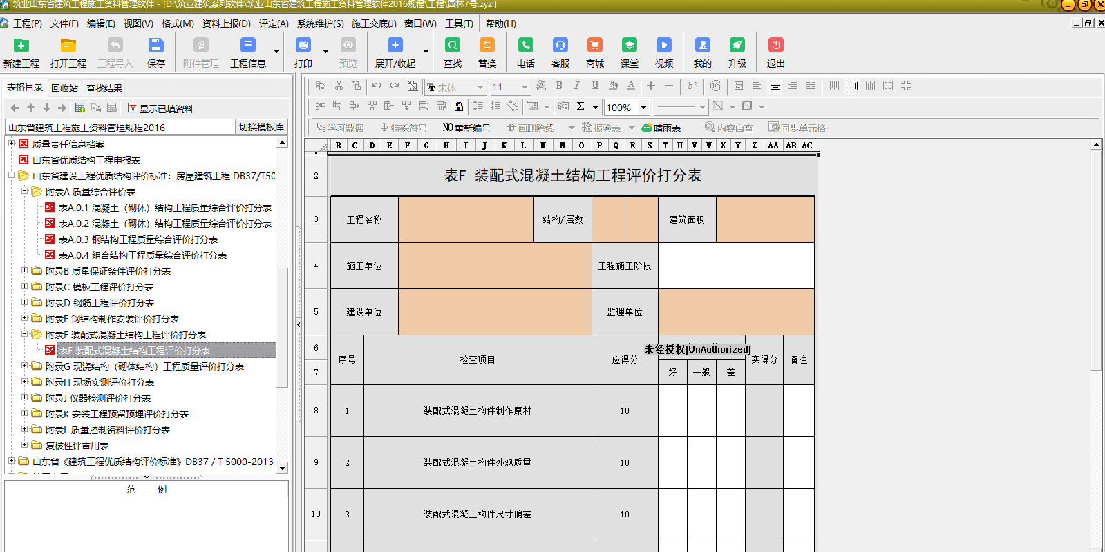 5.新建表格,工程信息、验收部位等信息自动填充,省去重复填充的烦恼。