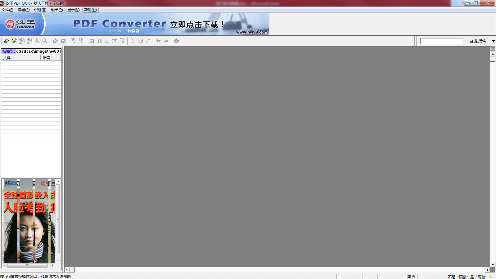 汉王 pdf ocr官方版是汉王ocr 6.0 和尚书七号的升级版,新增pdf文件的处理功能,可以把pdf文件(包括文本型和图片型)转化为可编辑的各种文档,如(pdftoword)或(pdftotxt)。汉王 pdf ocr官方版现已全面升级,并且对个人用户免费,无功能限制。