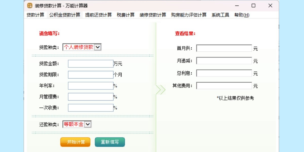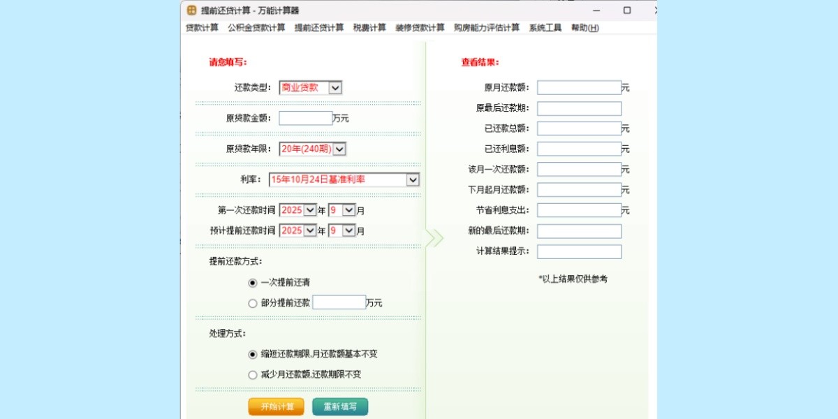 计算商业贷款、公积金贷款、组合型贷款,可根据贷款类别和不同利率计算首期付款、贷款月数和月均还款等重要数据,还能做提前还贷计算哦。