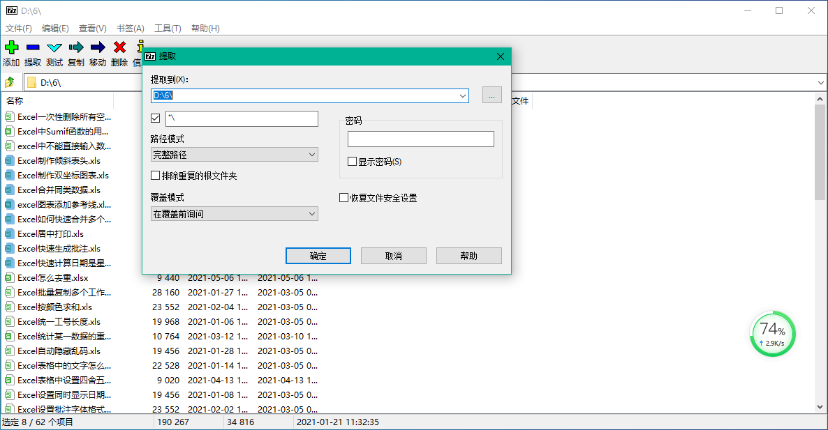 支持对7z, xz, bzip2, gzip, tar, zip and wim等格式的压缩/解压缩!
