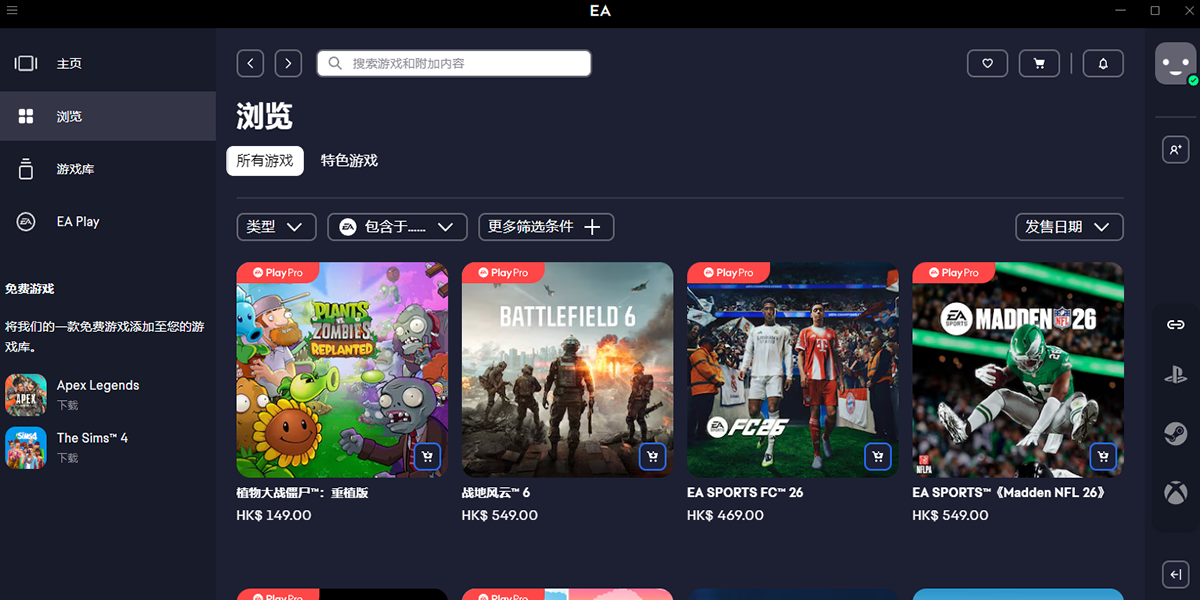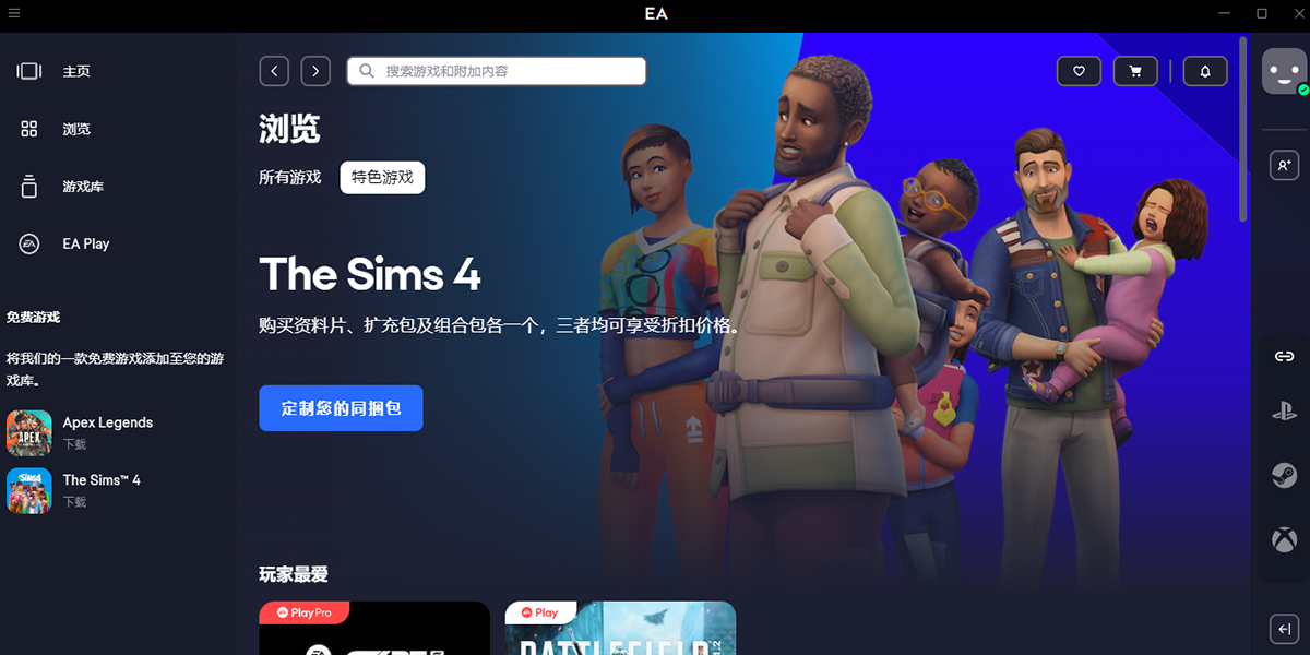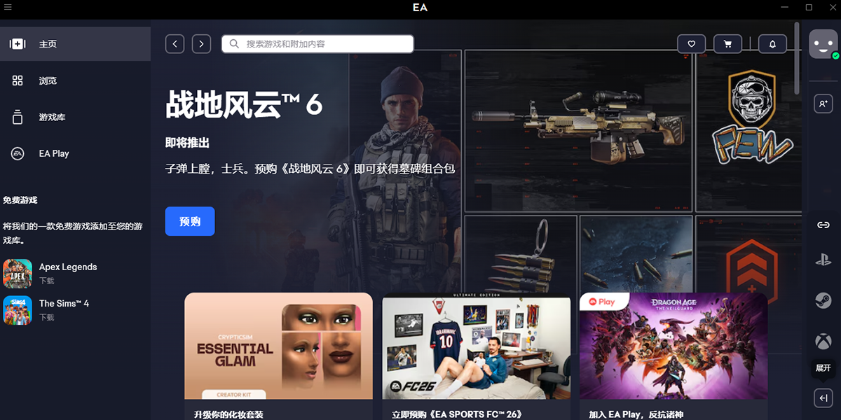 ea app(原origin游戏平台)是一款由ea全新推出的游戏社交平台软件,玩家可以在这里体验ea旗下所有游戏内容,并且同步了origin账号数据,让你不用重新注册也能畅玩。ea app是electronic arts的全新强化pc平台,您可以在此轻松游玩您喜爱的游戏。ea app流畅且最佳化的使用者介面,让您能够比以往更快进入游戏。