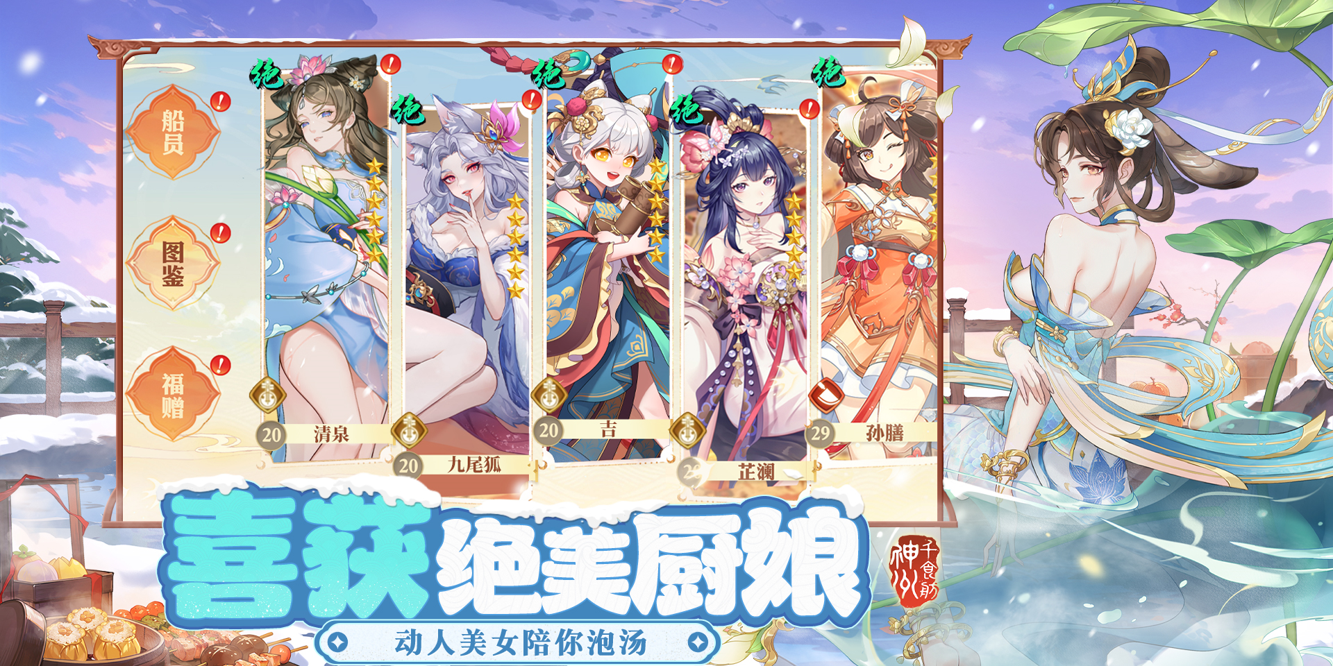 金牌厨娘掌舵,十八般厨艺样样通!除了美食,船上的名厨伶人也是养眼又养胃。他们之中有气场御姐,有风流才子,有可爱萝莉,也有元气正太;他们各个身怀绝技,只要你安排得当就能发挥所长,助你经营船舫。