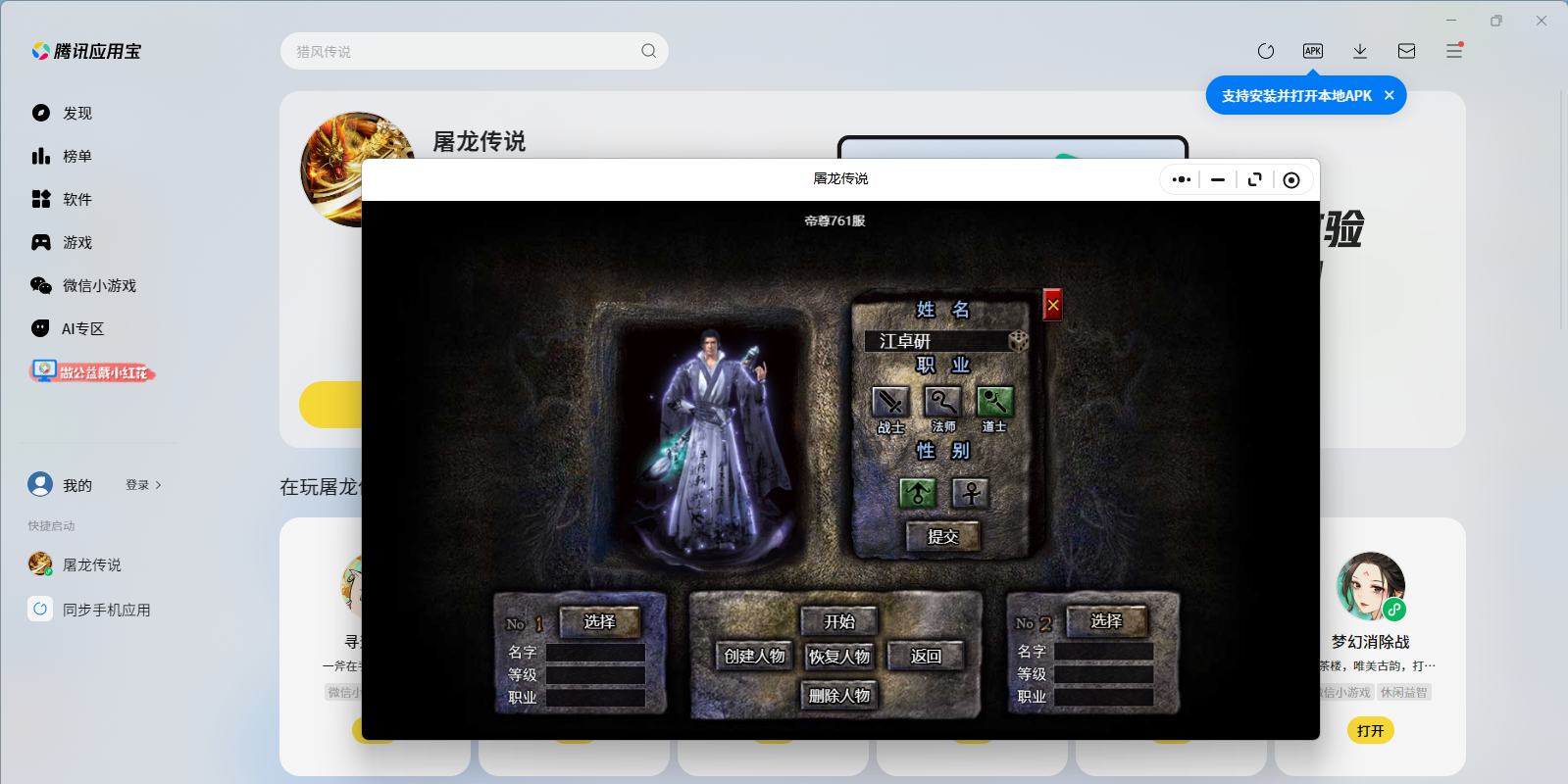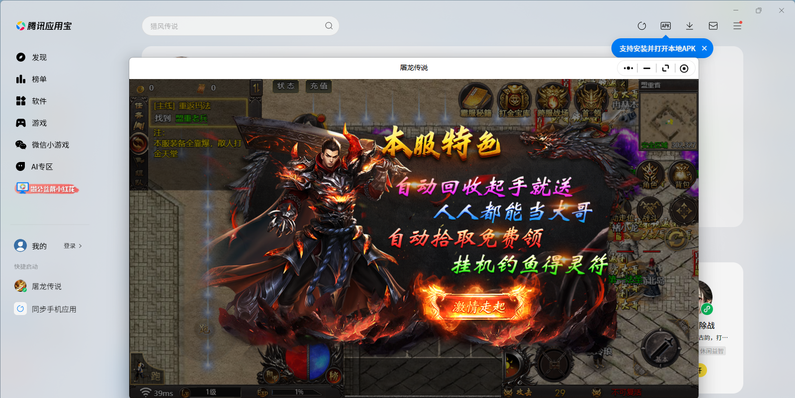 《屠龙传说》是一款角色扮演传奇游戏,使用d3d硬件加速引擎无缝加载,pk更加爽快!战士的高爆发、法师的远程、道士的召唤,各自有自己战斗特色,大型怪物攻城,曲折神话故事,拉风的骑宠,秀丽曲美的世界,让战斗更加多彩!