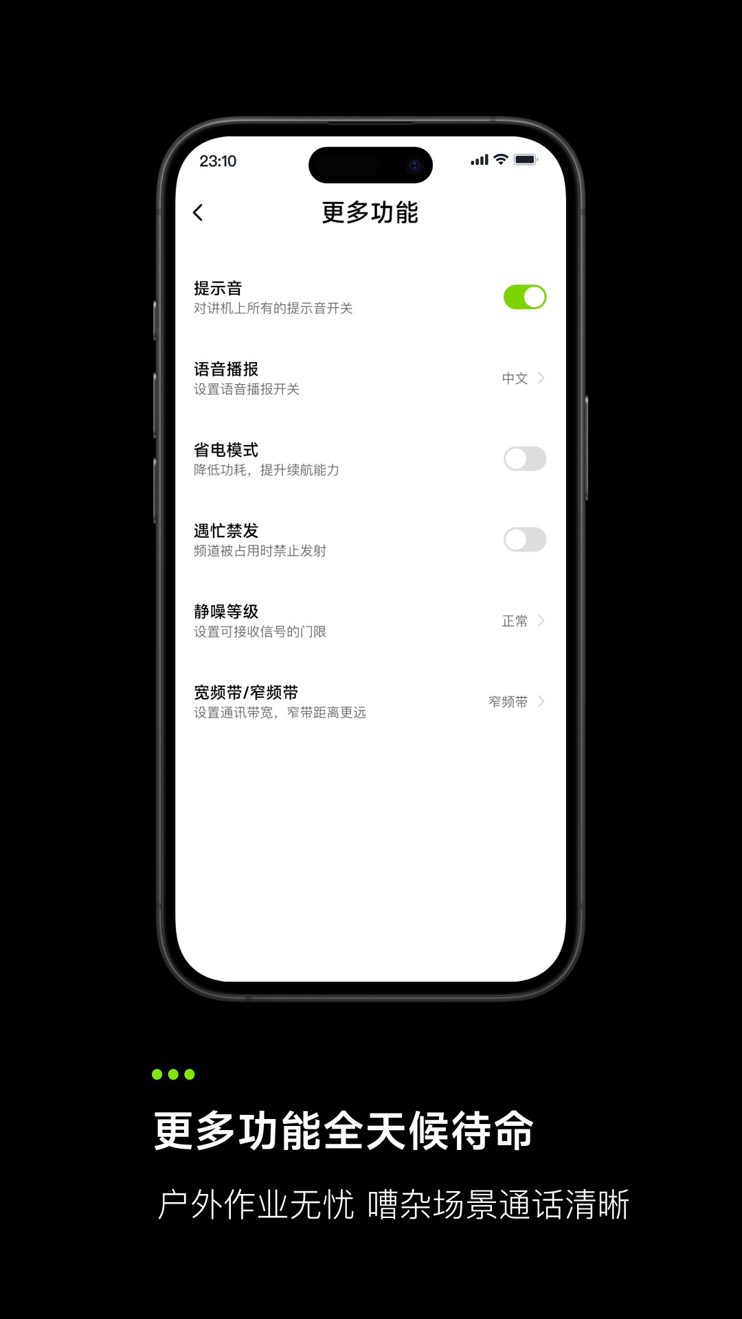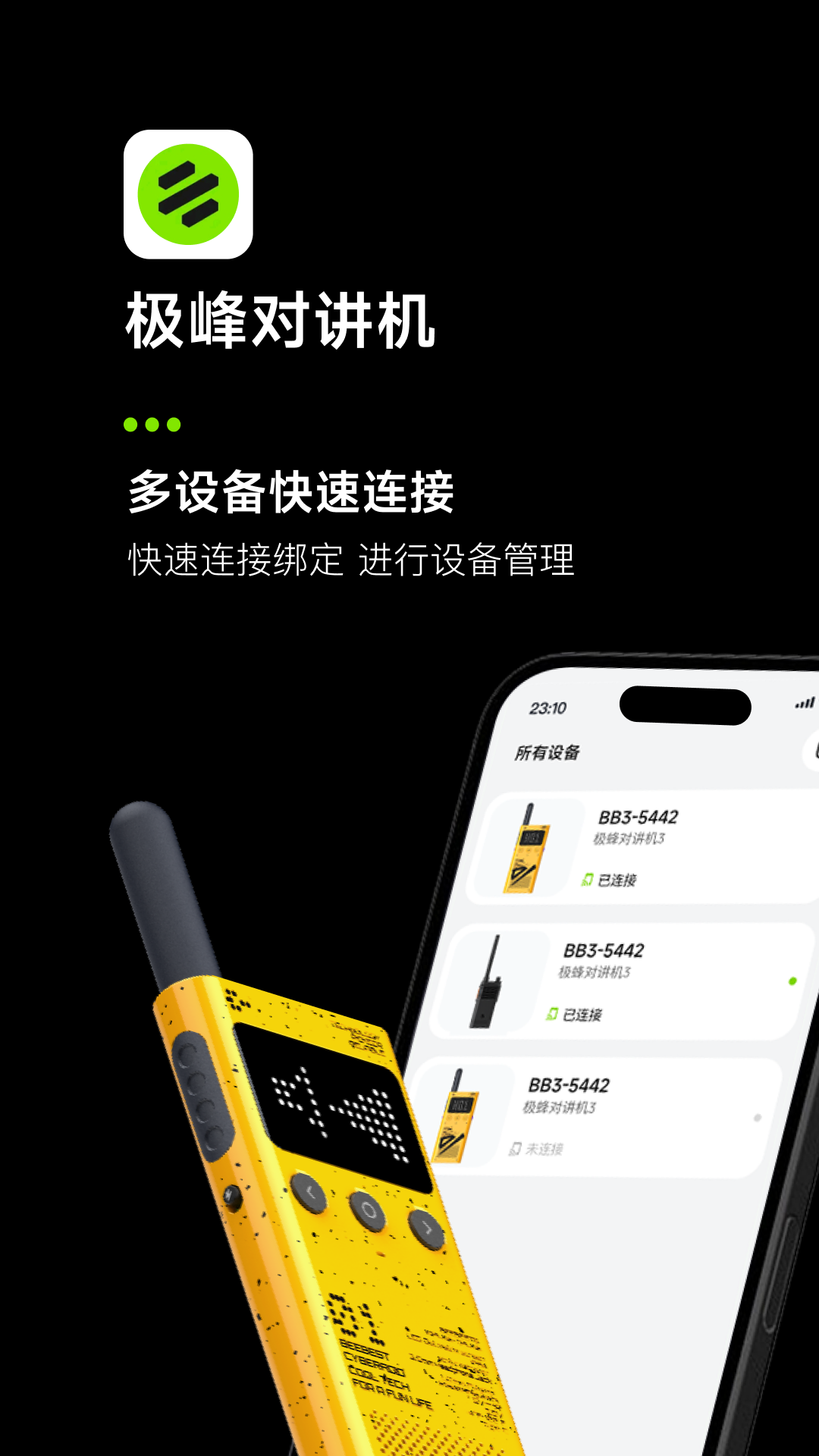 极蜂对讲机客户端是为极蜂对讲机量身打造的一款专属 app,可通过蓝牙快速连接对讲机,实现无网络位置共享、频道快速设置等功能。传统对讲机的功能晦涩难懂、操作复杂;极蜂对讲机可结合app 使用,不但能快速上手,还会有更多酷炫好玩的功能等你去发掘。