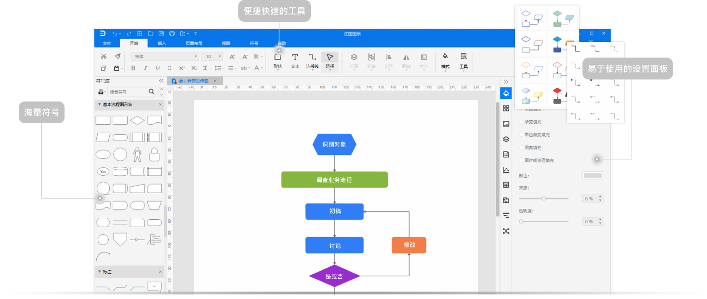 1、 超过220个绘图类型。亿图图示可以创建220多种图表类型,利用模板和符号库简化绘图过程,即使是新手也能