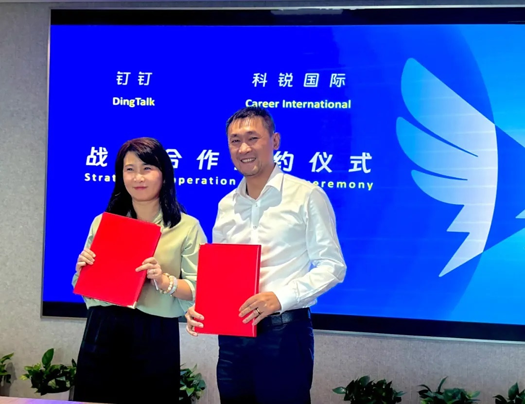 【2024年9月20日科锐国际与钉钉达成战略合作,共启全球企业出海服务新篇章】2024年9月20日,北京科锐国际人力资源股份有限公司(以下简称“科锐国际”)与钉钉签署战略合作协议。双方将秉承资源共享和优势互补的理念,开展长期、深度的合作,通过链接市场和产业生态,打造行业领先的出海专业服务平台,更好地满足中国企业在全球范围的人才招聘、协同办公和管理需求。科锐国际是领先的技术驱动型人才解决方案提供商,已于 2017 年在深交所上市。公司通过构建“技术+平台+服务”的商业模式,为企业人才配置与业务发展提供一体化支撑。目前,公司为20多个细分行业提供全面的人力资源服务,业务遍及中国、新加坡、美国、英国、德国、荷兰等多国,拥有100多家全球分支机构和近3000名员工。过去一年内,科锐国际服务企业近3.7万家,灵活用工派出38.3万人次,聚合人力资源生态合作伙伴约1.3万家。