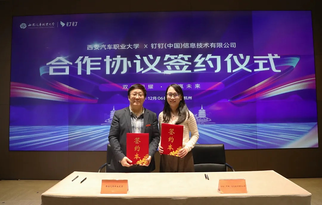 2024年12月6日,西安汽车职业大学与阿里巴巴集团旗下的钉钉(中国)信息技术有限公司(以下简称“钉钉”)在阿里巴巴西溪a区顺利签署框架合作协议。双方将共同探索数智化人才培养的新标准和新模式,推动教育与技术的深度融合,培养适应未来社会需求的职业人才。