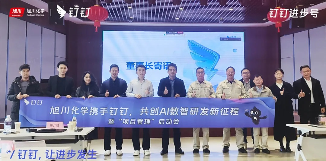 2025年1月初,【旭川化学携手钉钉共创ai数智研发新征程】旭川化学(苏州)有限公司携手钉钉(中国)信息技术有限公司在旭川化学总部召开研发“项目管理”启动会,共同开启 ai 数智研发新征程。旭川化学董事长江平、钉钉苏州大区总经理施江峰及双方团队代表出席会议。