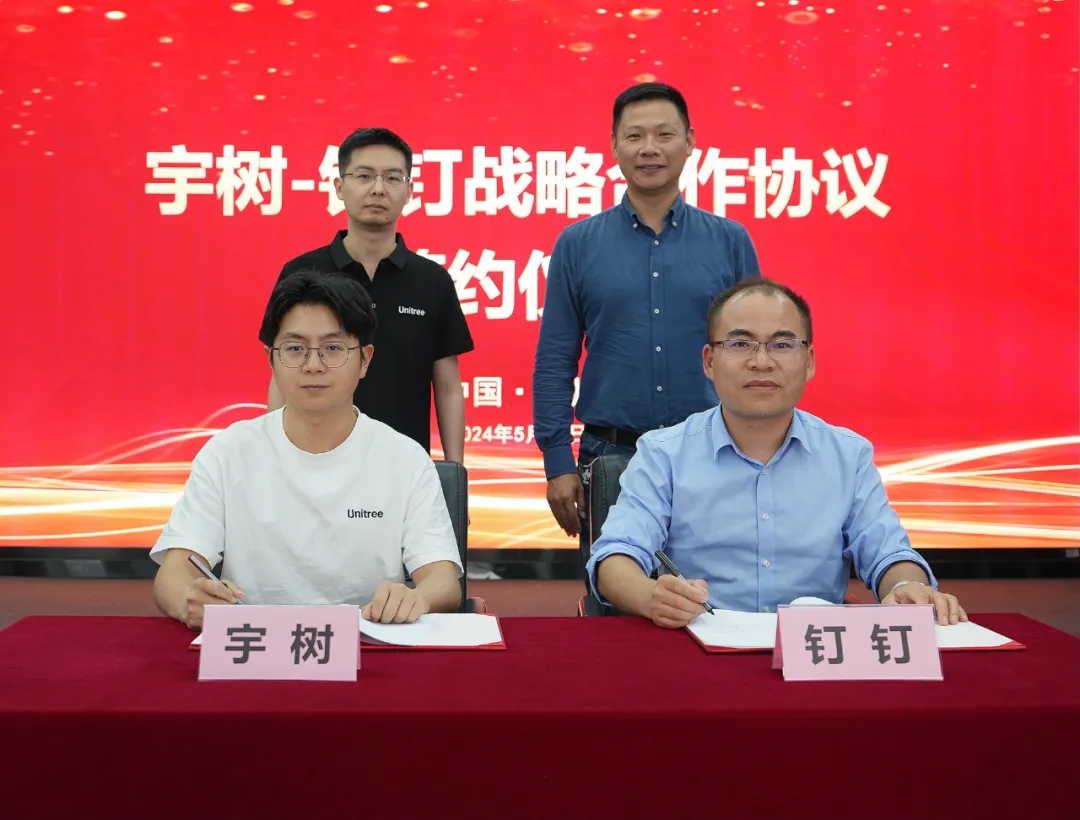 【2024年5月22日,钉钉与全球知名具身智能企业杭州宇树科技有限公司(以下简称“宇树科技”)宣布达成战略合作】宇树科技战略合作负责人方兴表示,钉钉是国内最早全面拥抱ai智能化的协同办公平台,钉钉强大的数字底座和丰富的开放生态资源,都将助力宇树科技加快数智化转型的步伐。同时,他也期待宇树科技在巡检、安防等领域的经验,以及沉淀多年的ai技术能力,能够与钉钉在更多领域加强合作,实现强强联合,带动行业创新和数智化转型。此次合作,宇树科技将以钉钉数字底座打造企业级协同办公平台,借助钉钉生态资源和开放能力,尤其是人工智能领域的最新技术与应用,开启数智化转型,推动组织创新与业务提效。此外,双方还将围绕产品能力融合、行业解决方案共创、市场活动等方面展开深入合作。