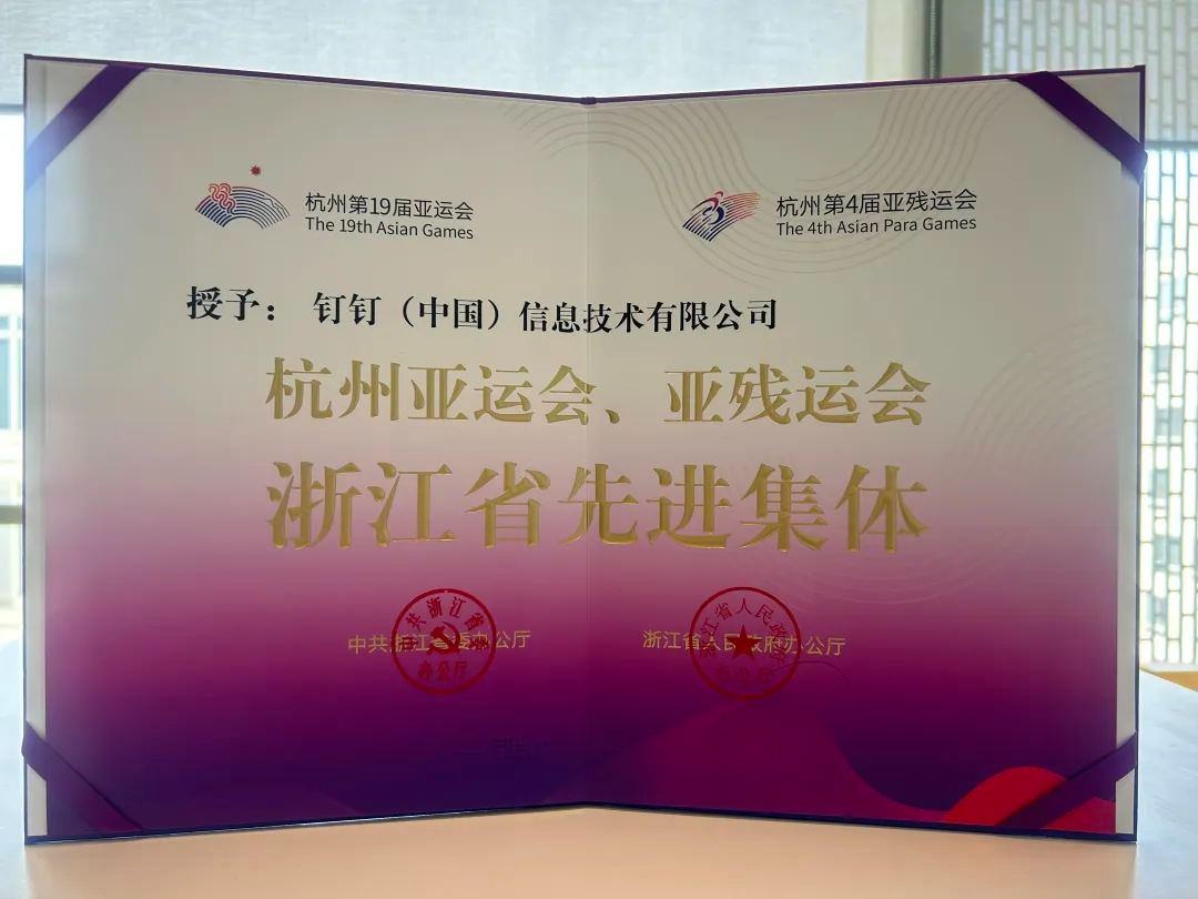 【2024年2月,钉钉荣获 “杭州亚运会、亚残运会浙江省先进集体” 称号】近日,浙江省委、省政府隆重举行杭州亚运会、亚残运会总结表彰大会,会议总结了杭州亚运会、亚残运会成功举办宝贵经验,表彰亚运先进集体和先进个人。其中,钉钉(中国)信息技术有限公司被授予“杭州亚运会、亚残运会浙江省先进集体”称号。2019 年起,杭州亚组委联合阿里钉钉团队打造大型体育赛事一体化数字办赛平台亚运钉,集成人员管理、赛事培训、交通组织、医疗急救、赛场监管等服务功能,并接入赛事综合指挥平台和各专项指挥平台。杭州亚运会是史上首届提出智能办赛理念的亚运会,筹办工作涉及浙江省 6 个地市、56 个竞赛场馆、数十个省部属高校、数百家企业单位,全程有 10 多万工作人员及志愿者参与。借助“亚运钉”,“一部手机掌上办赛”成为现实,这也是亚运会历史上的首创。在亚组委与钉钉公司的通力合作下,亚运钉实现了 10 万办赛人员跨地区、跨部门、跨层级的大协同。自2023年6月开始,钉钉成立了”亚运钉核心运营小组“和”安全重保小组“,形成固定的工作机制保证亚运钉的稳定运营。钉钉工作人员专人驻场、建立专项服务群、提供专属热线服务。为了更好地用数字技术赋能亚运会,亚运钉全方位接入阿里 ai 能力,亚运钉办赛人员可以使用钉钉魔法棒、“问答机器人”调用 ai 能力,大大提高信息获取的效率,节约工作时间。钉钉荣获此殊荣,将继续在更多大型赛事中发挥协同底座作用,助力智能办赛。