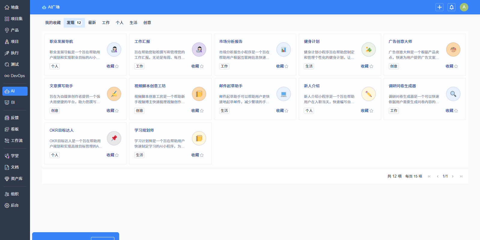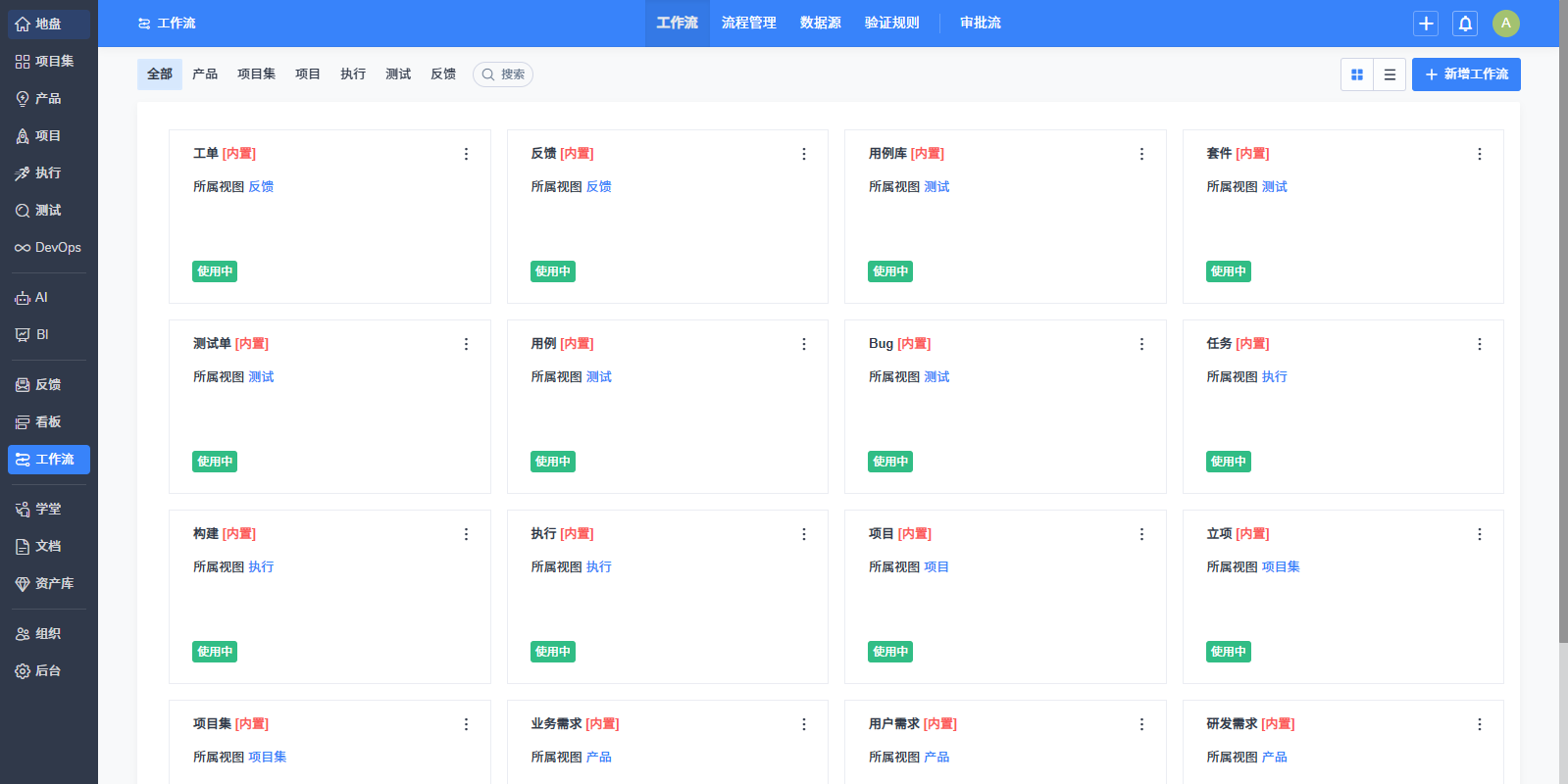 个人仪表盘、产品仪表盘、项目仪表盘、测试仪表盘、文档仪表盘等各类信息总览。