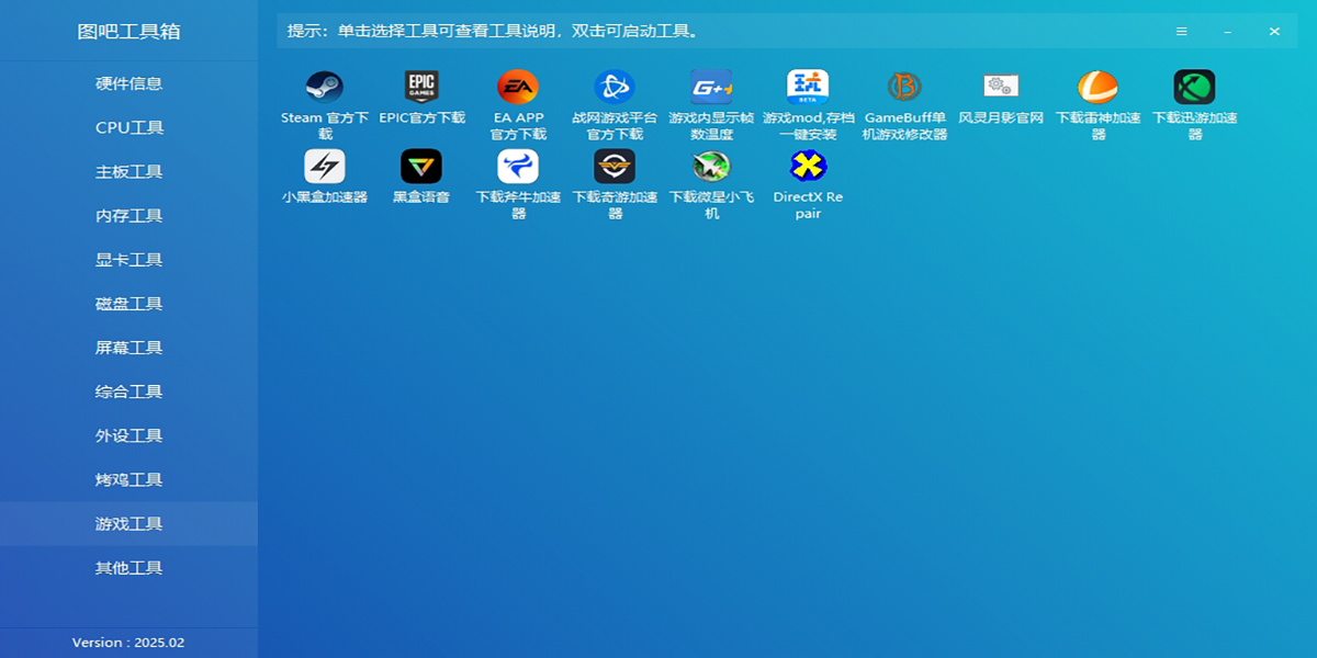 图吧工具箱,是开源、免费、绿色、纯净的硬件检测工具合集,专为所有计算机硬件极客、diy爱好者、各路大神及小白制作。集成大量常见硬件检测、评分工具,一键下载、方便使用。软件汇聚了硬件信息、cpu工具、内存工具、显卡工具、硬盘工具、屏幕工具、综合检测、外设工具、拷机工具等十几类上百个硬件检测工具。图吧工具箱官方版是用户进行软件检测的最好帮手,是一款非常实用的软件。