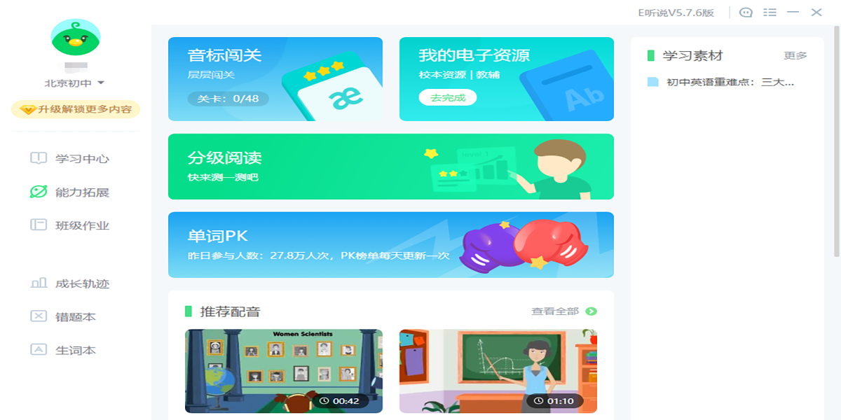 讯飞e听说(e听说中学)是一款非常出色的教育教学的学习软件,e听说中学官方版是专门针对英语学习的学生设计的软件,其软件可以有效的帮助学生学习英语,音标学习、智能作文、听说模拟、听说同步、课文朗读等功能,极大的提高了学生英语学习水平。