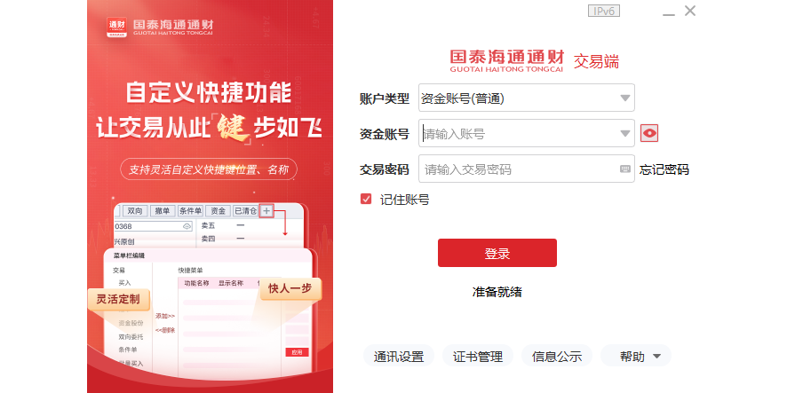 国泰海通通财独立交易客户端是国泰海通证券为选择其它行情软件的客户提供的委托系统,直接安装该软件登录资金账号后即可下单,支持持仓资产快速刷新、条件单、一键清仓等特色功能。