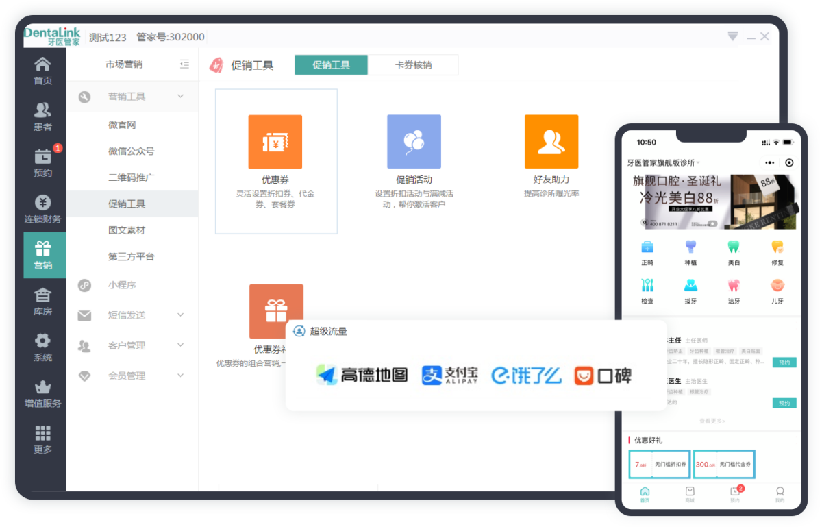 牙医管家口腔管理软件,saas口腔云平台, 数据三重加密,为口腔诊所提供诊疗、管理、营销、采购一站式解决方案。