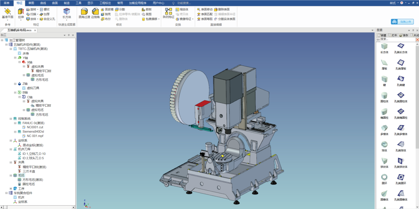 标准模块提供2~3轴铣削、钻削加工。多轴加工及车铣复合编程加工为选配模块。
