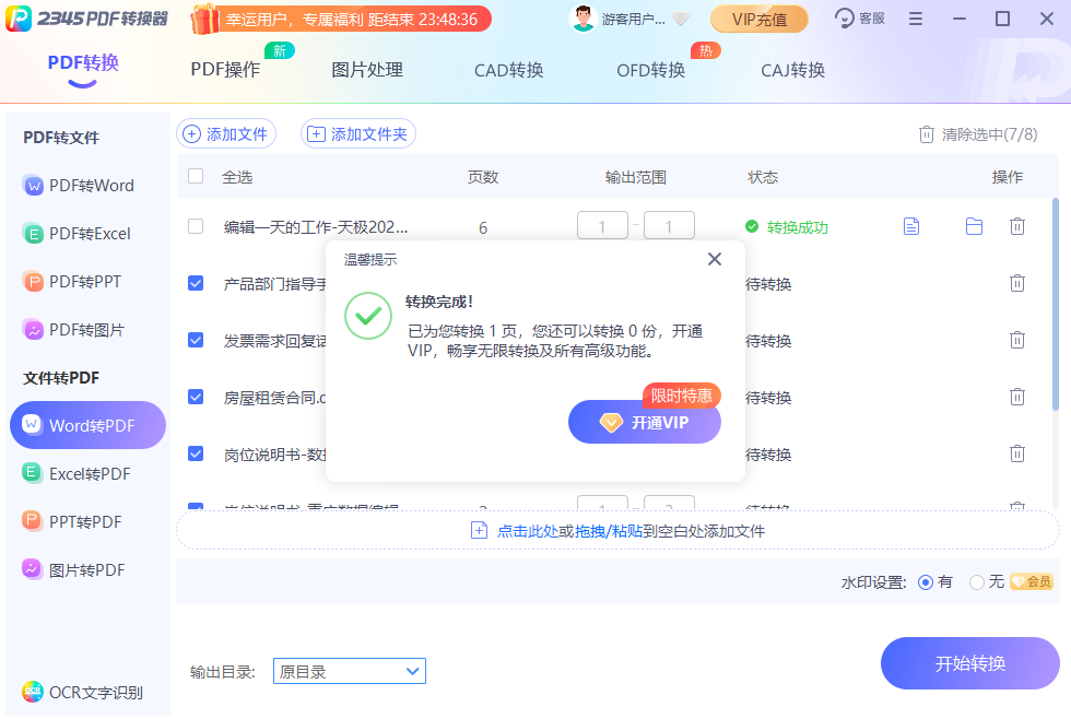 2345pdf转换器最新版是一款功能十分强大的pdf文档格式转换工具,该软件拥有干净清爽的用户界面和丰富的功能板块,旨在为用户提供一套十分完成的文件格式转换方案,只需几个简单的步骤即可完成对pdf文件的转换操作,有需要的小伙伴千万不要错过哦。