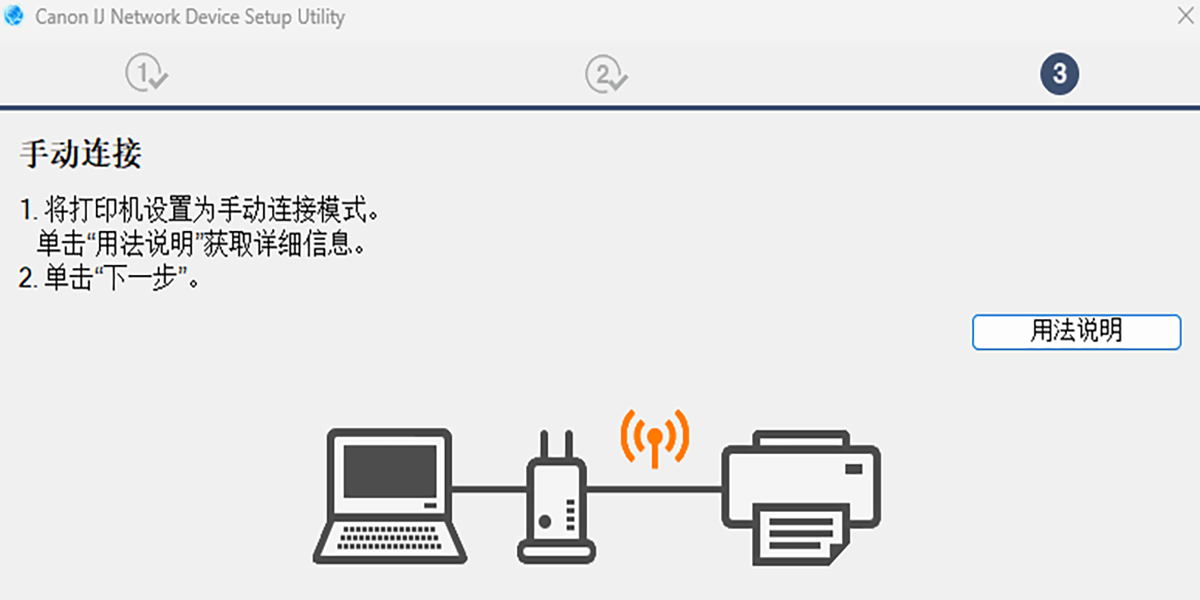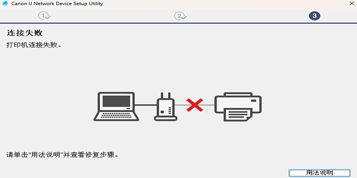 如果连接发生任何错误,诊断打印机和安装ij network device setup utility的计算机的设置。此外,ij network device setup utility会修复打印机和计算机的状态(某些型号不可用)。