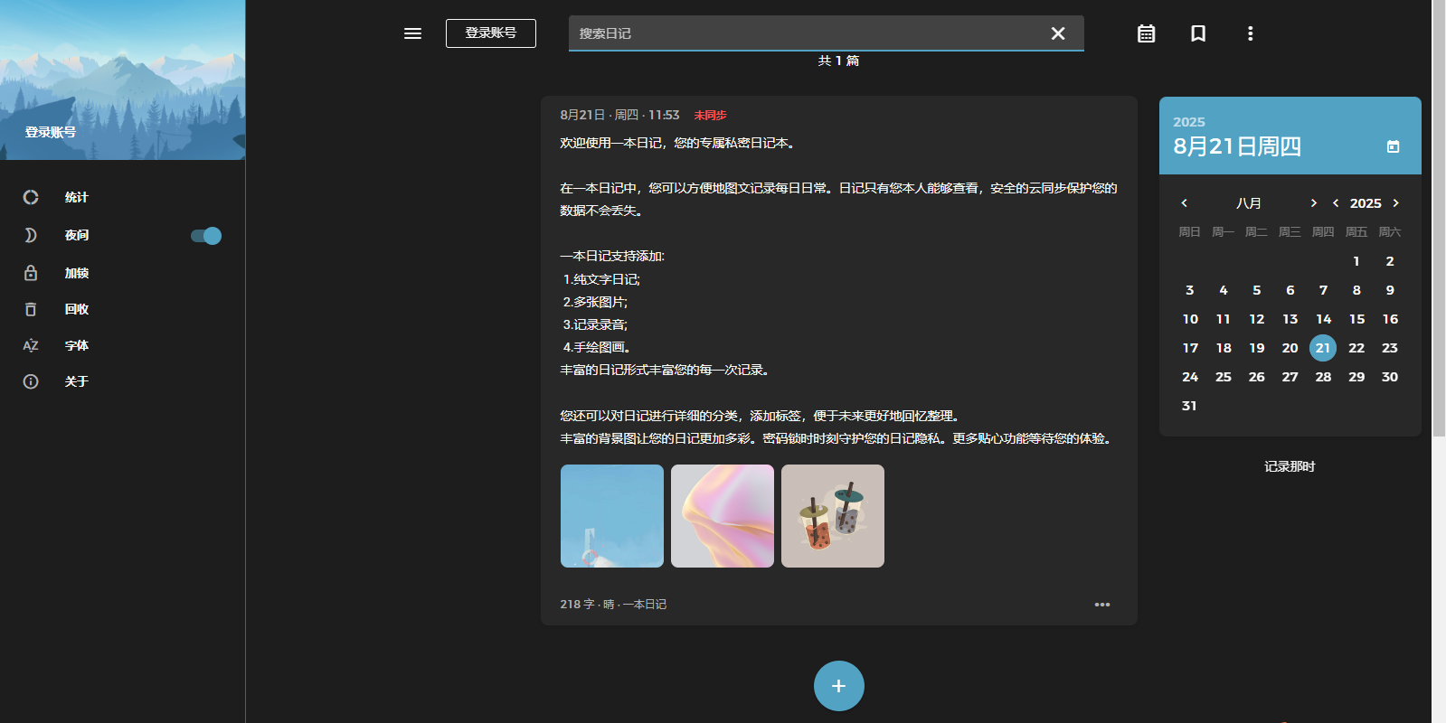 欢迎使用一本日记,您的专属私密日记本。