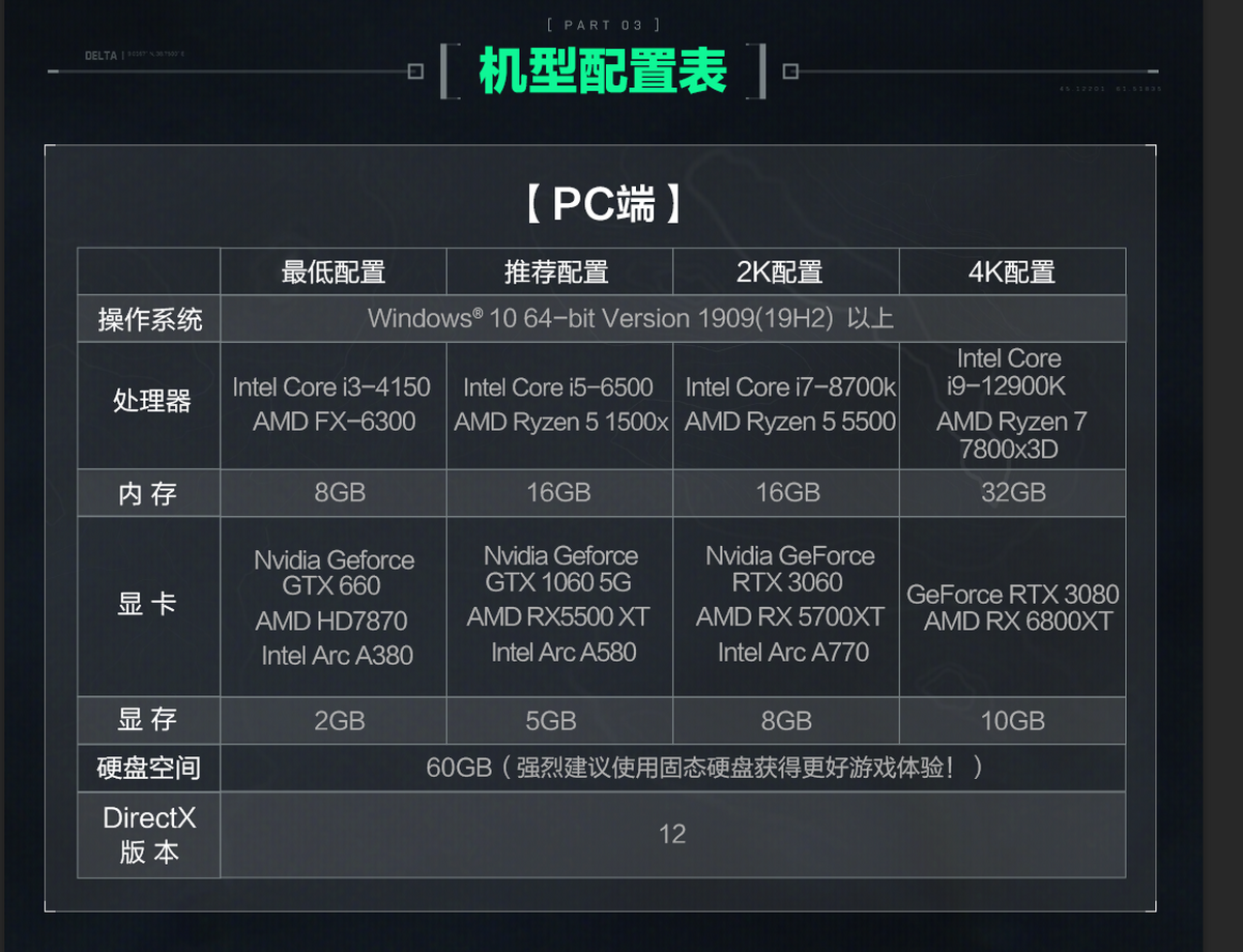 玩三角洲行动电脑配置要求(本地安装的话,硬盘需要60gb以上)