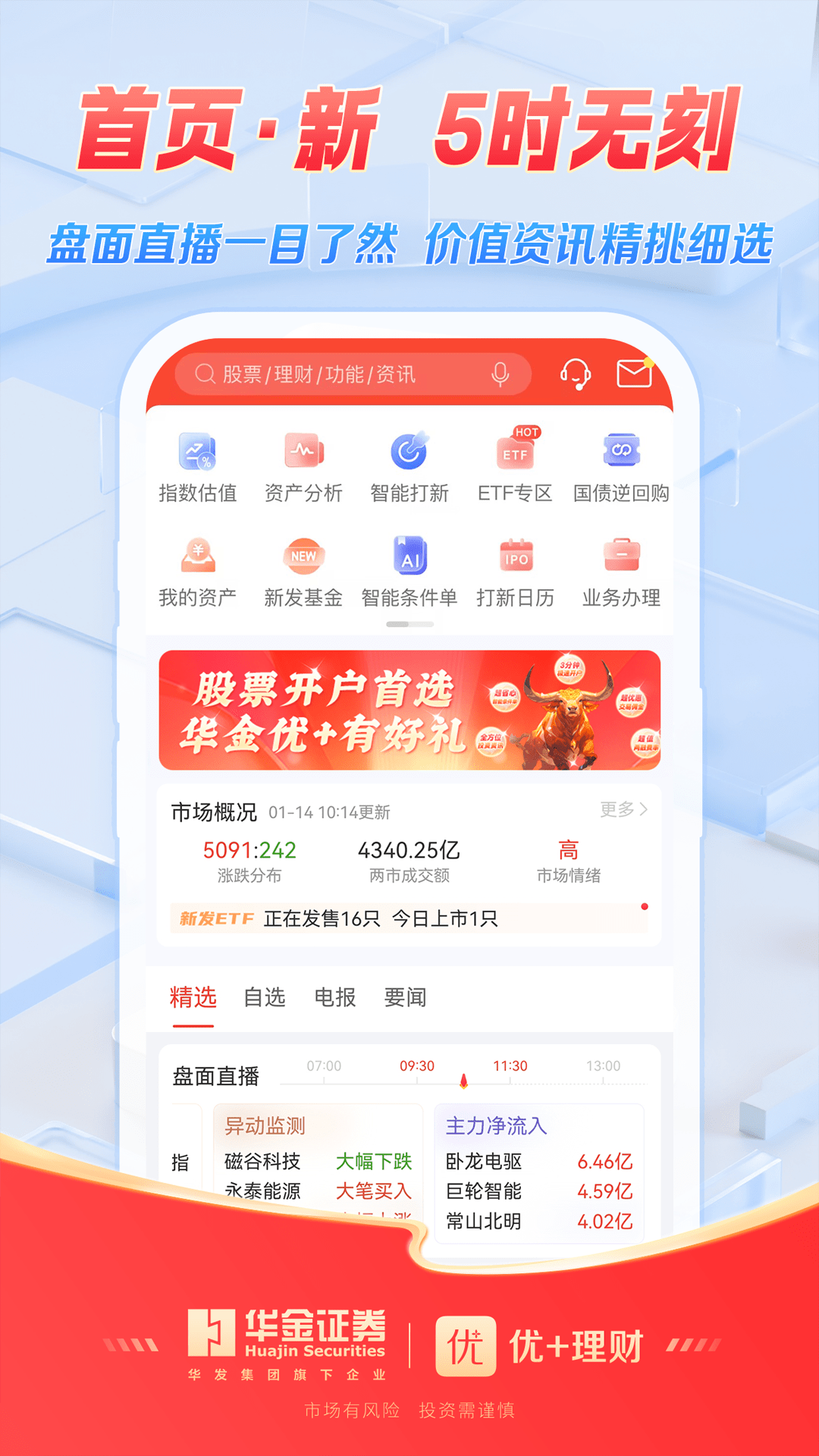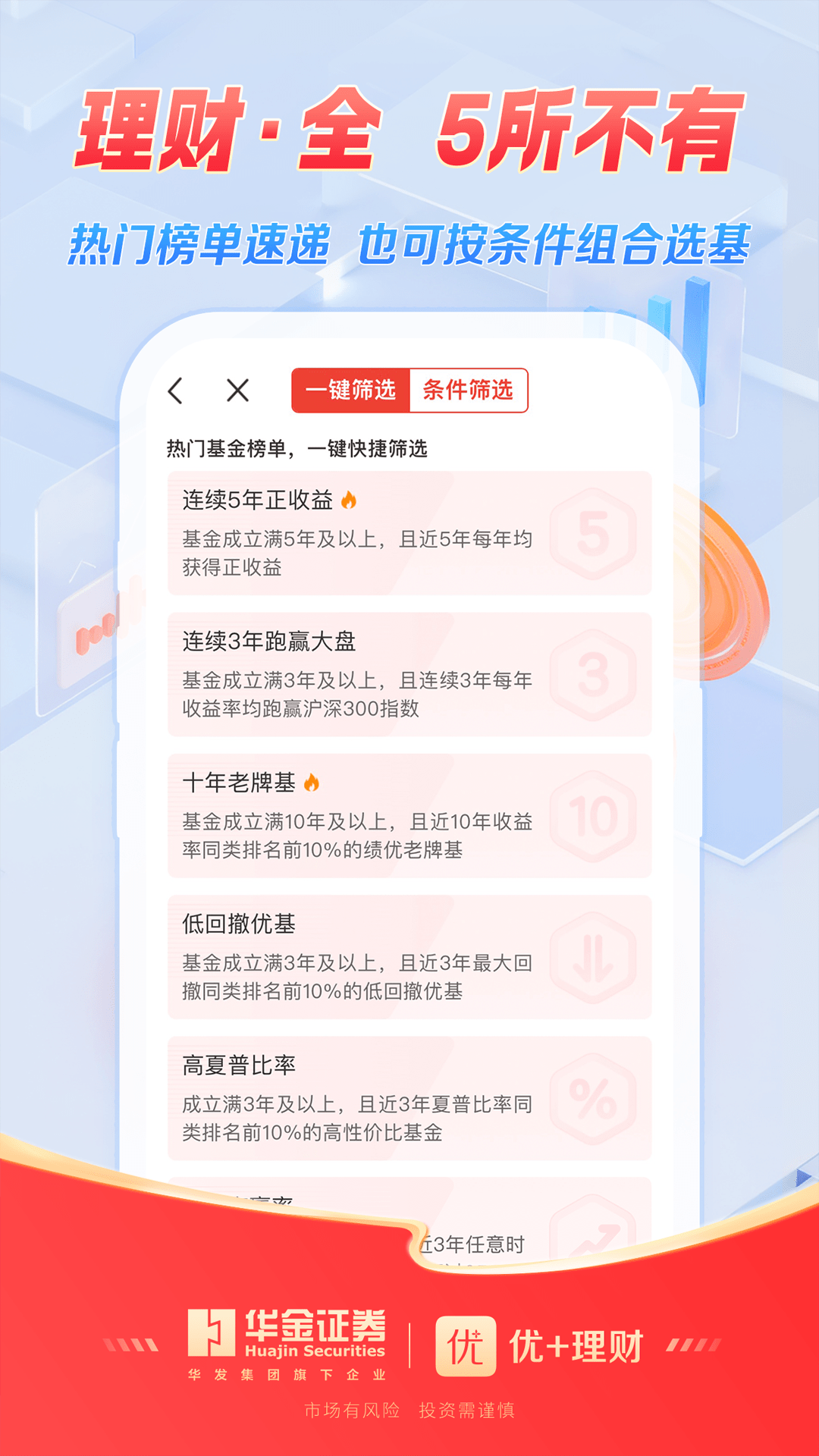 “优+理财”是华金证券股份有限公司旗下的互联网金融服务软件,集证券开户、行情浏览、快速交易、投资资讯、理财产品购买等功能为一体,为投资者提供快捷、安全的互联网证券综合理财服务。