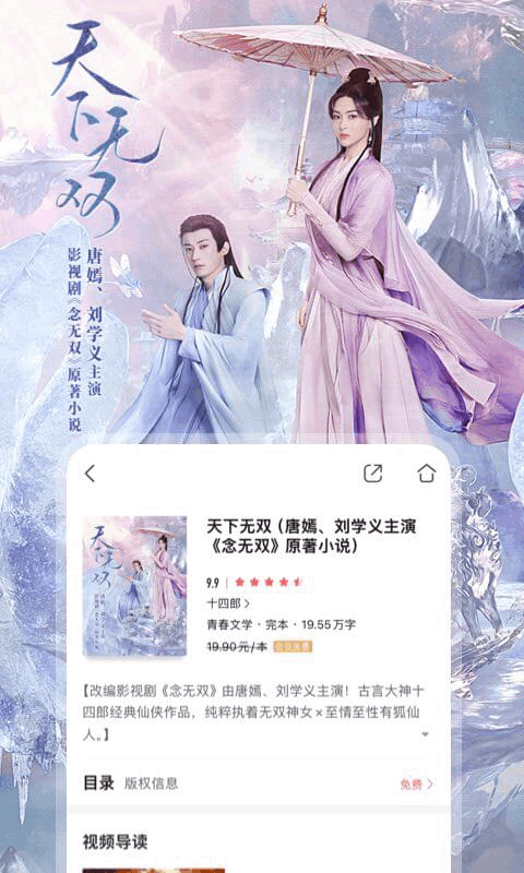 《念无双》原著《天下无双》:唐嫣、刘学义主演,工匠神女与千面狐仙的相爱相杀、双向救赎!戳原著赴三界绝恋!