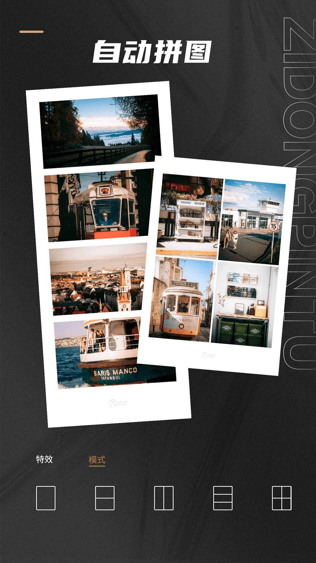 -自动拼图:拍照前选好喜欢的拼图模式,拍完即得拼好的照片
