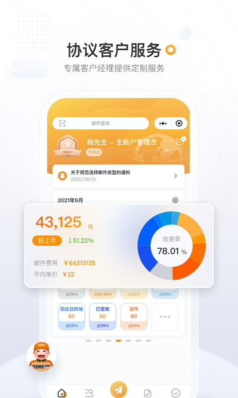 ems是由中国邮政速递物流有限公司开发的一款快递服务应用,秉承 “全心、全速、全球”的核心服务理念,为客户提供自助下单、订单管理、特色服务等一站式掌上便捷快件服务。