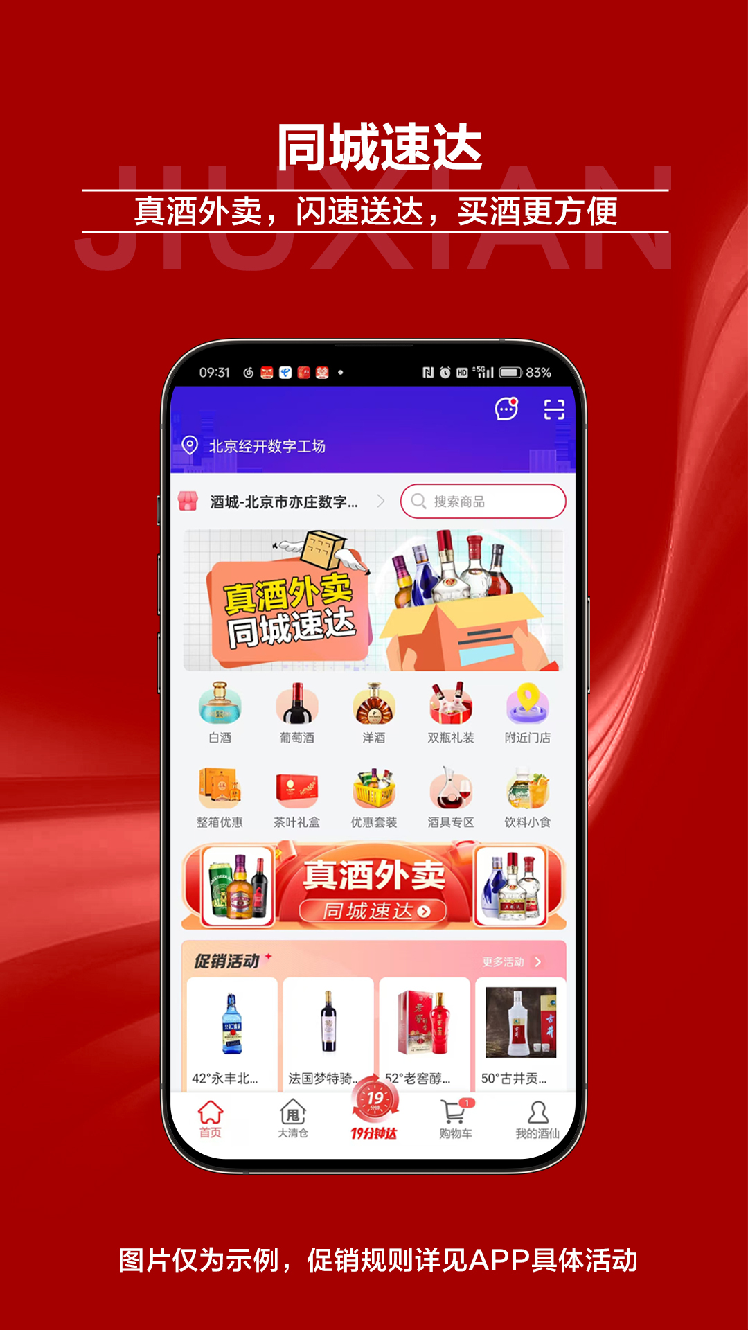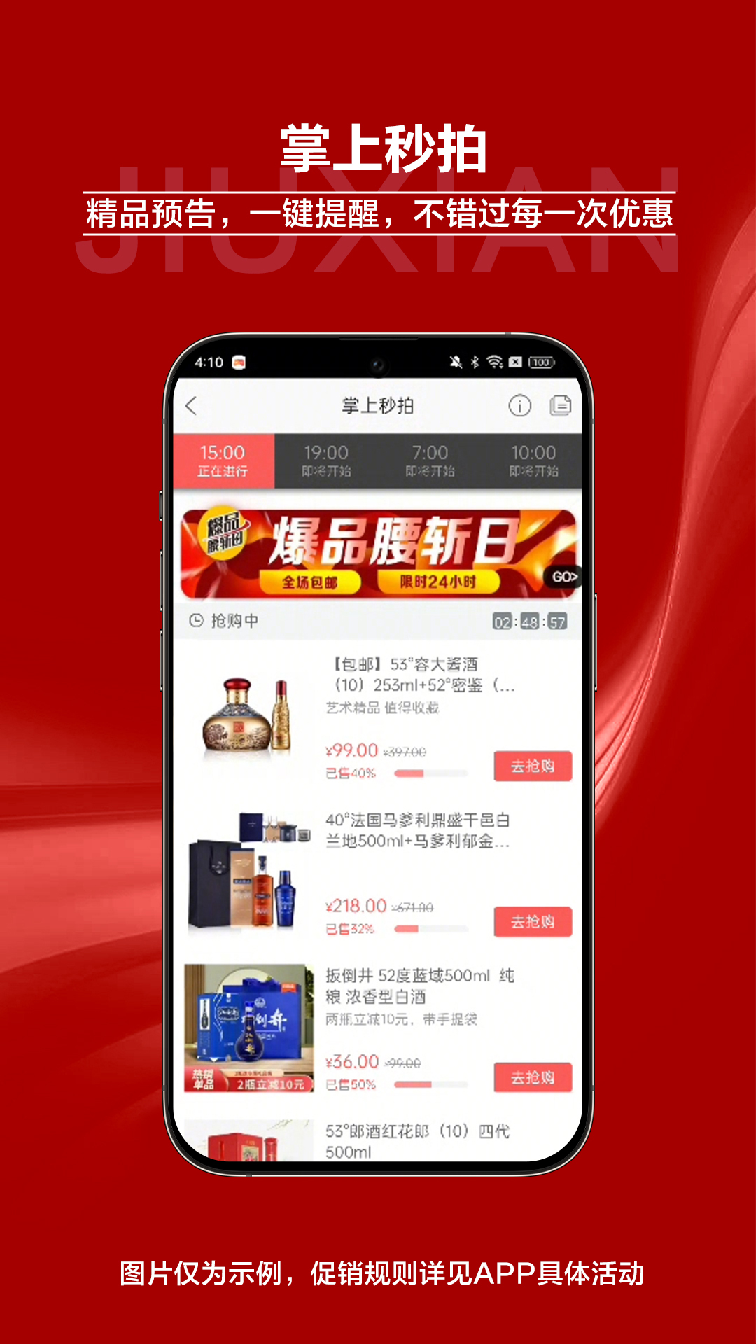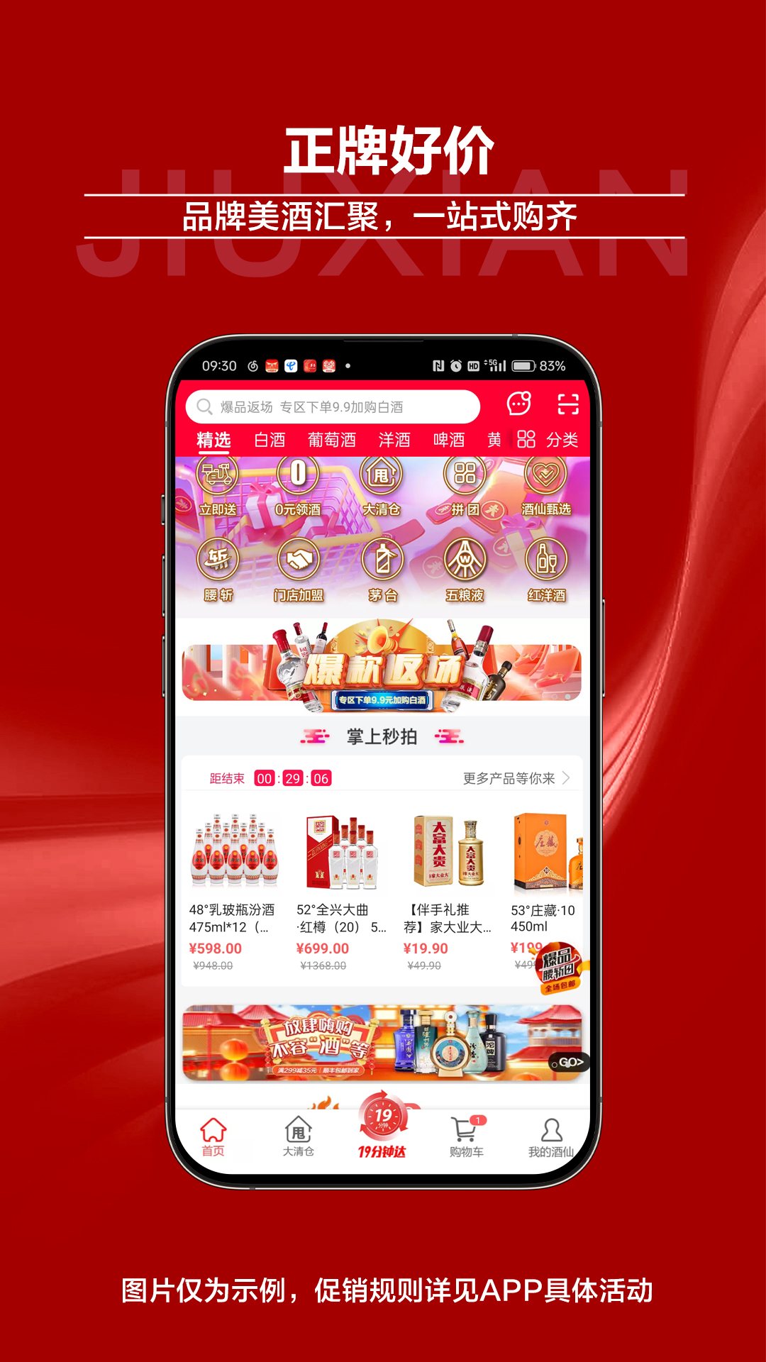 4、一键选酒:热卖好酒、名优白酒、红酒直采、喜宴用酒。