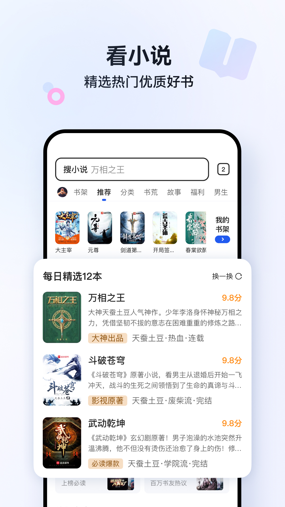 海量正版免费网文小说、影视原著、出版书籍每日更新,玄幻修仙、都市爽文、悬疑推理…个性化推荐你喜欢的优质好书
