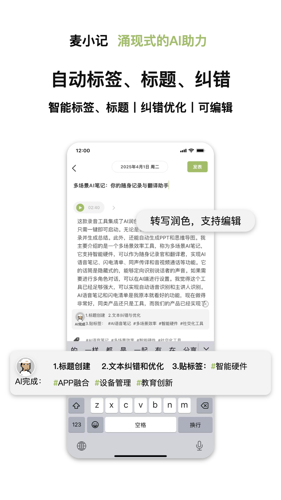 ai笔记管理:智能标签,便于分类。