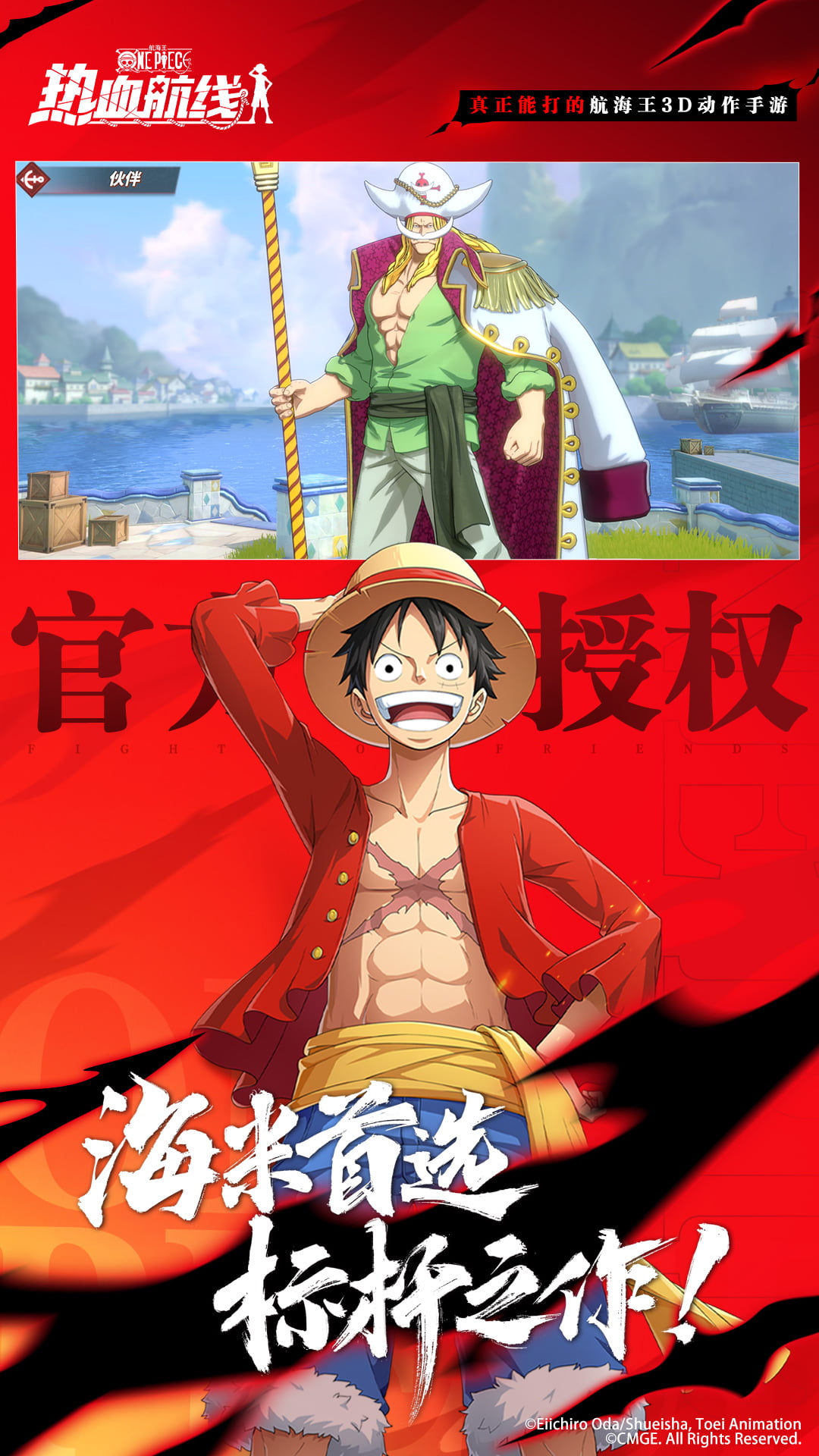 关于《航海王热血航线》 《航海王热血航线》是一款东映动画正版授权,海米都在玩的航海王3d动作手游!游戏力求还原伙伴的技能设定和华丽特效,为玩家带来酣畅淋漓的动作体验,pvp竞技场放肆开打,全视角3d战斗热血出招!在游戏中,你还可以重温原著动画剧情,收集超强力伙伴,自由探索奇幻海域,体验立体还原的沉浸式航海世界。 出发!“航海王我当定了!”